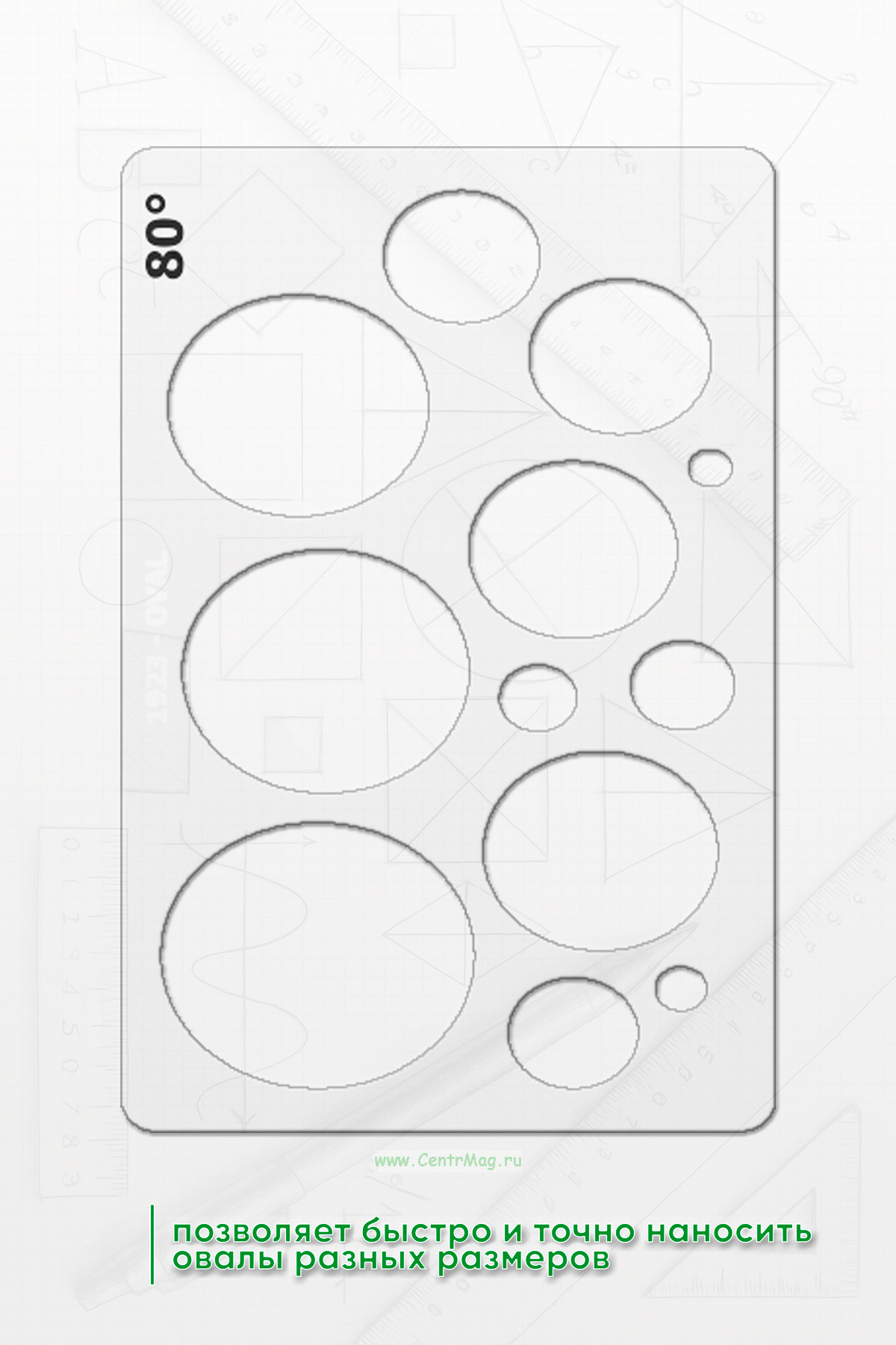 Шаблон позволяет быстро и точно наносить овалы разных размеров. Этот шаблон позволяет пользователю размещать его на любой поверхности и рисовать точные фигуры.