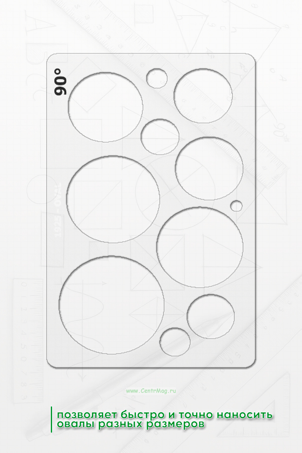 Шаблон позволяет быстро и точно наносить овалы разных размеров. Этот шаблон позволяет пользователю размещать его на любой поверхности и рисовать точные фигуры.