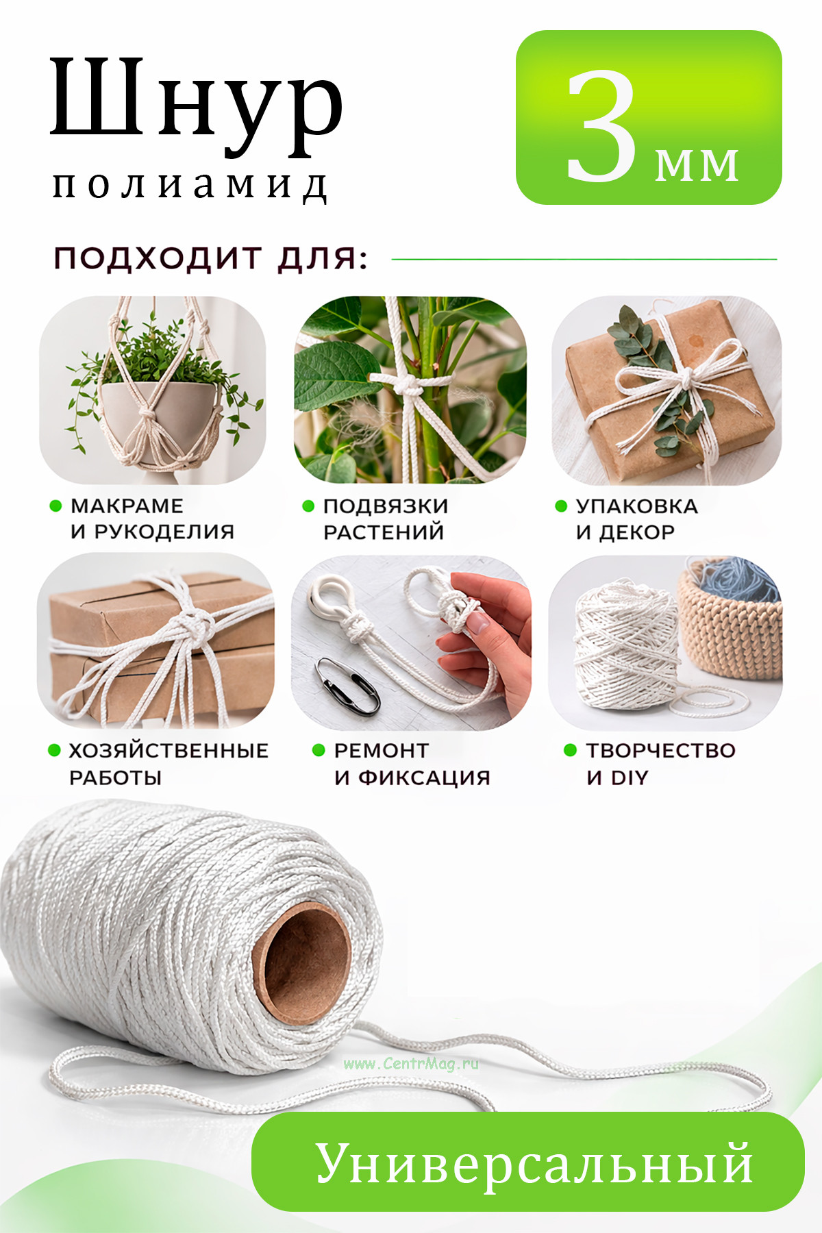 Шнур ПА 16-прядный (диаметр 3 мм), 50 метров (600 руб.)