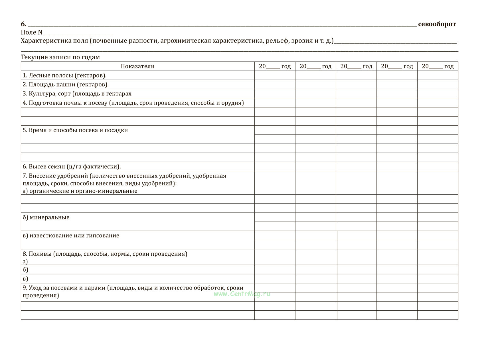В хозяйствах с небольшой площадью пашни и небольшим количеством севооборотов допускается ведение книги в целом по хозяйству.