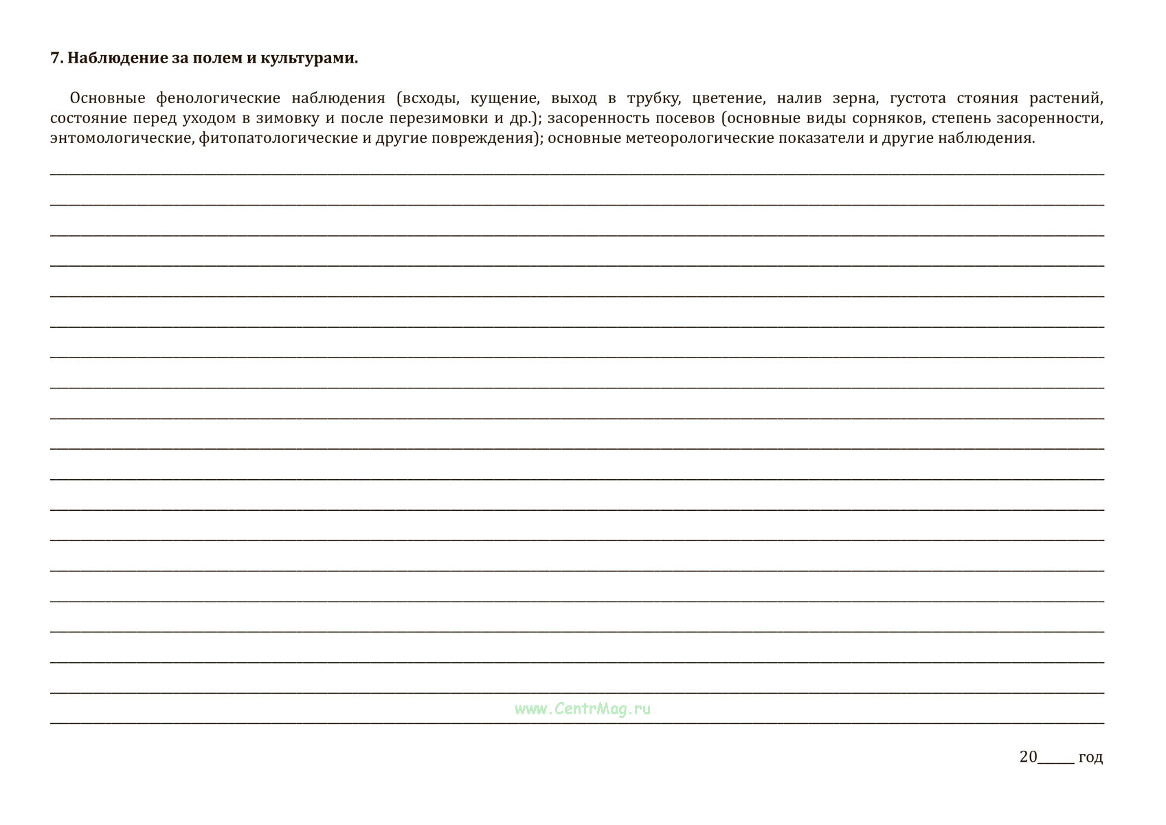 Общее руководство и контроль за правильным ведением шнуровых книг истории полей севооборотов в совхозе возлагаются на главного (старшего) агронома совхоза, а в колхозе - на главного (старшего) агронома колхоза. Записи ведутся чернилами чётко и разборчиво.