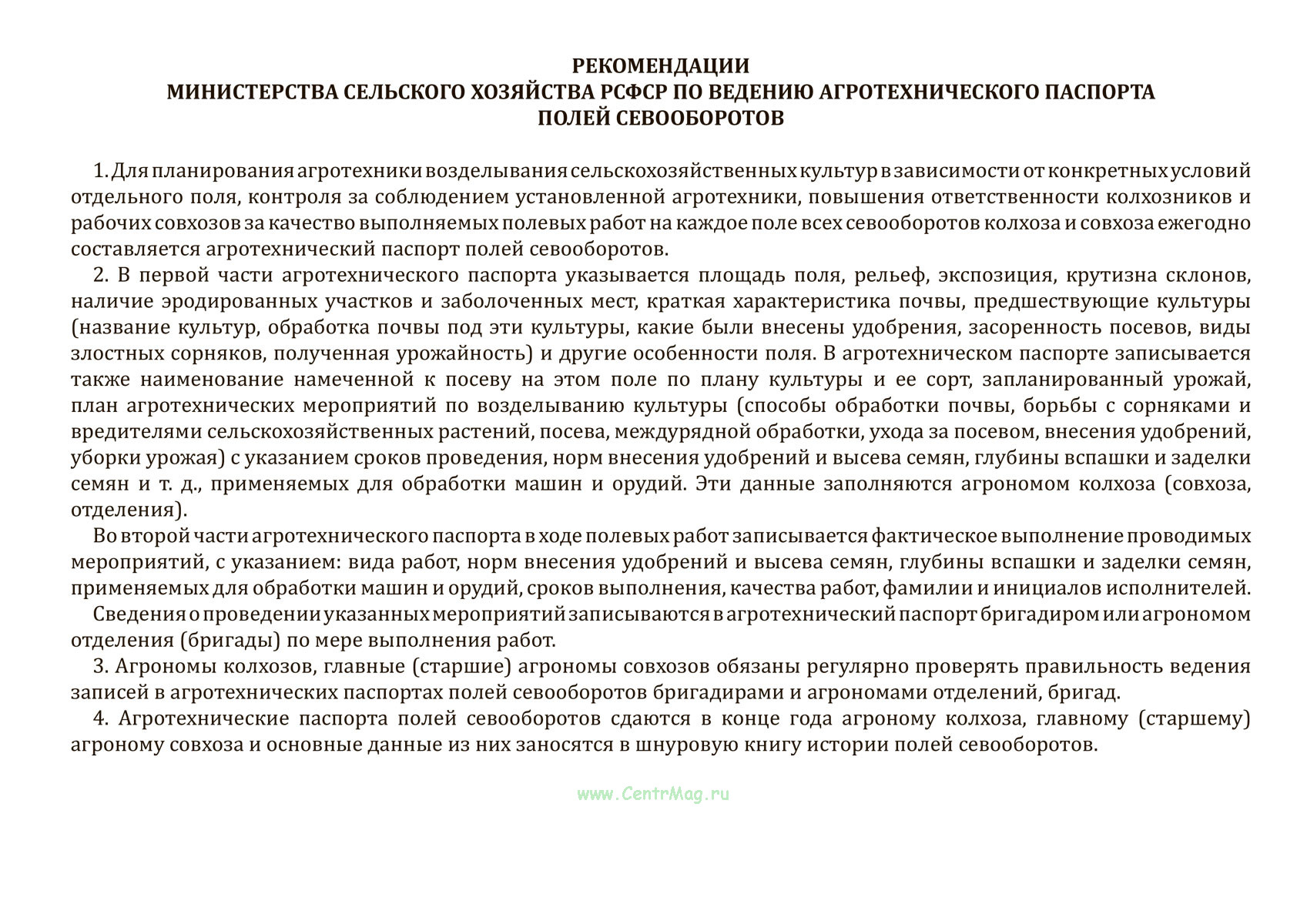 1. Шнуровая книга истории полей севооборотов ведется в каждом отделении (ферме) совхоза и в каждой бригаде колхоза.