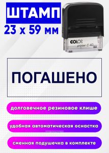 Штамп "Погашено", 23 x 59 мм