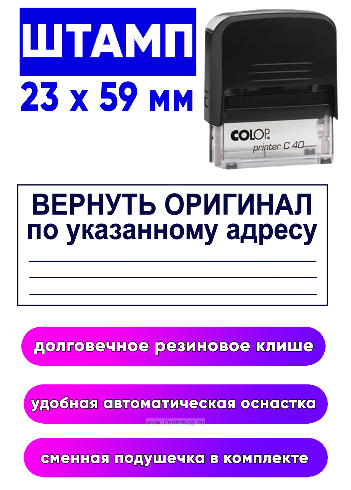 Штамп "Вернуть оригинал по указанному адресу", 23 x 59 мм