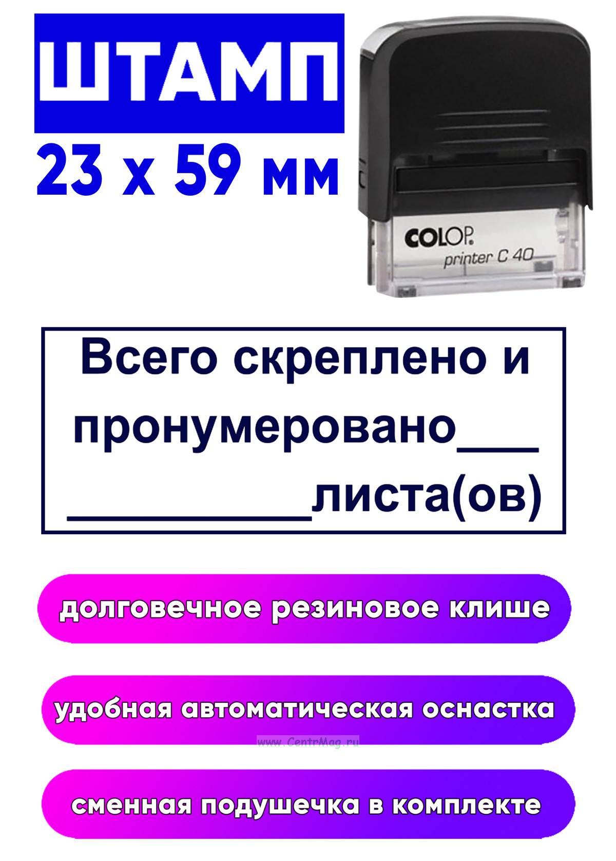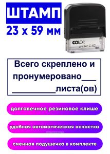 Штамп "Всего скреплено и пронумеровано", 23 x 59 мм
