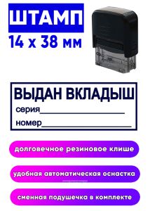 Штамп "Выдан вкладыш", 14 x 38 мм