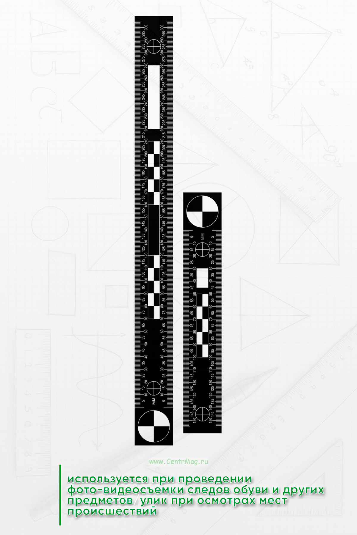 Складная криминалистическая угловая масштабная линейка используется при проведении фото-видеосъемки следов обуви и других предметов/улик при осмотрах мест происшествий, так же может быть использована в других сферах деятельности, позволяет определить точную площадь повреждения при съемке