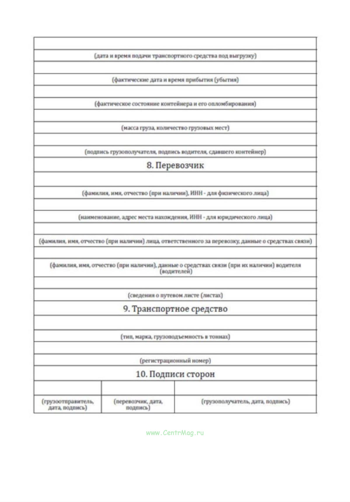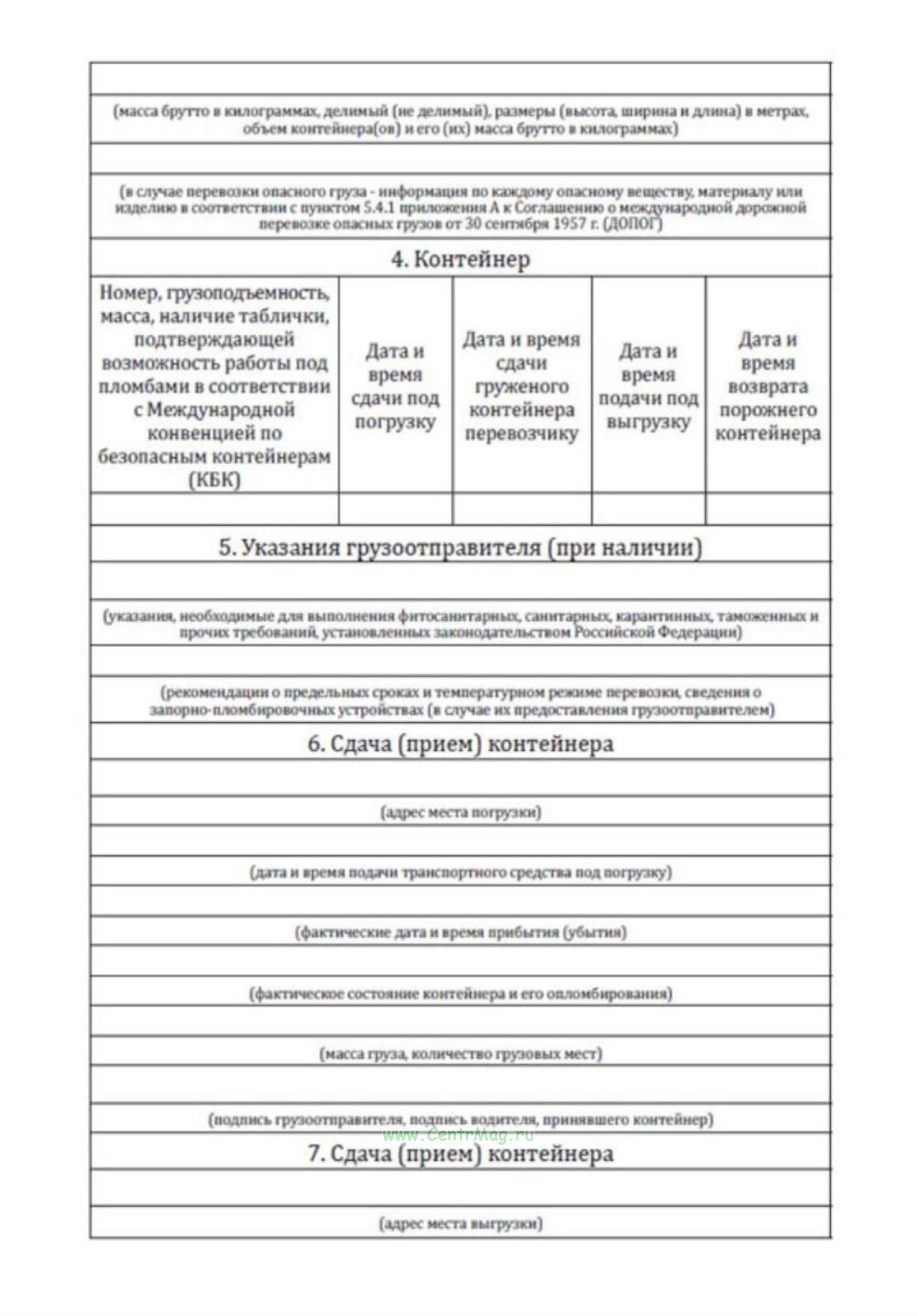 В случае если погрузка груза в контейнер и выгрузка груза из него осуществляются посредством снятия контейнера с транспортного средства, подача порожнего контейнера грузоотправителю или груженого контейнера грузополучателю подтверждается сопроводительной ведомостью, которая оформляется на бумажном носителе или формируется в виде электронной сопроводительной ведомости.