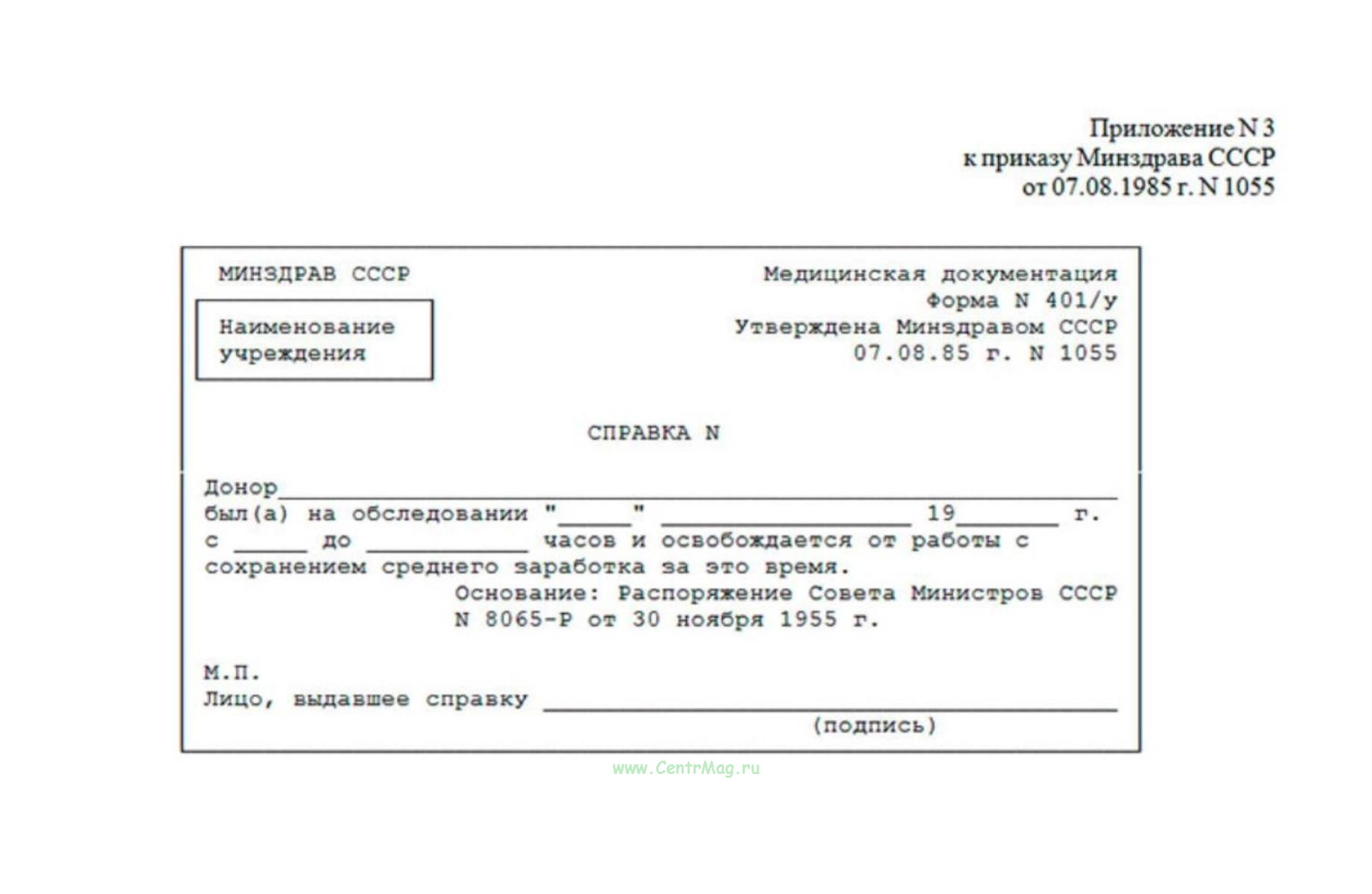 Справка донору об обследовании. Форма 401/у