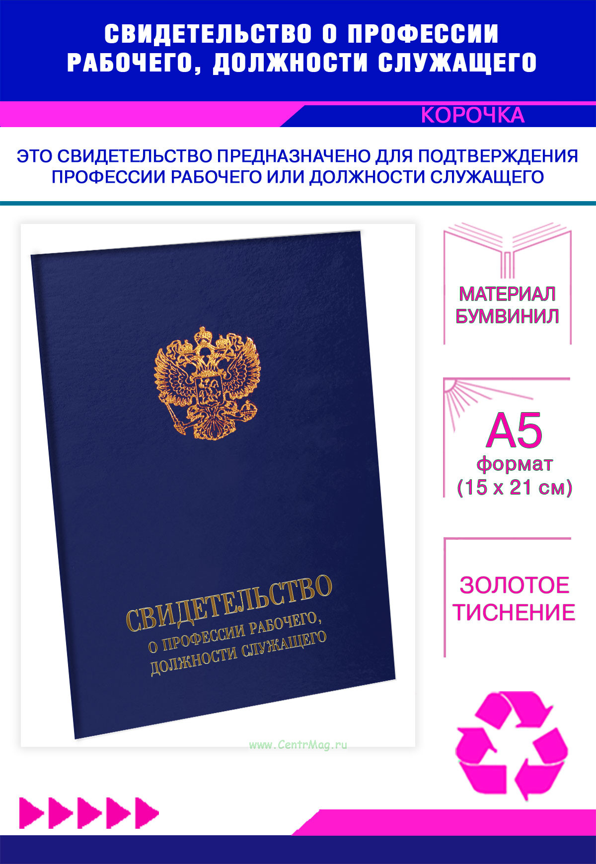 Цена на свидетельство о профессии рабочего, должности служащего, обложка, синий бумвинил в Москве - 140 руб.