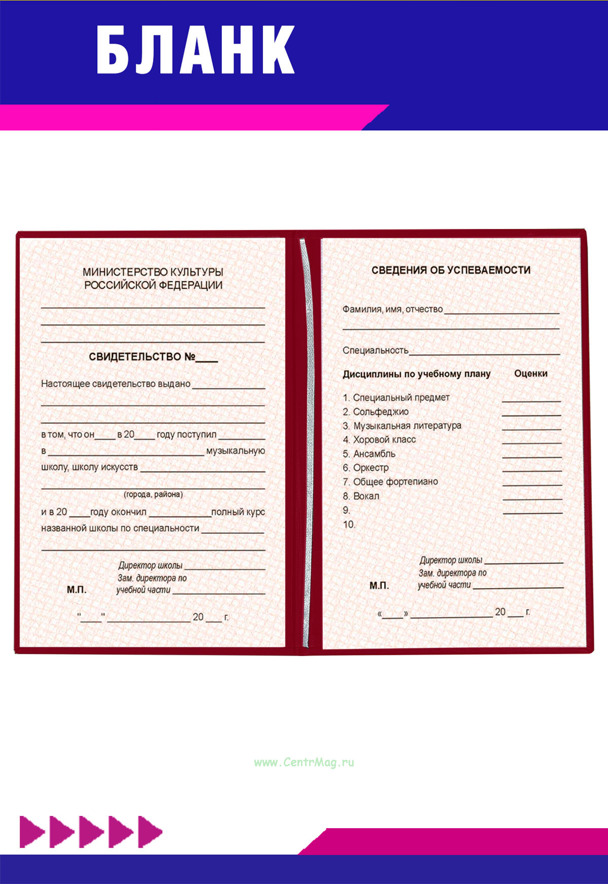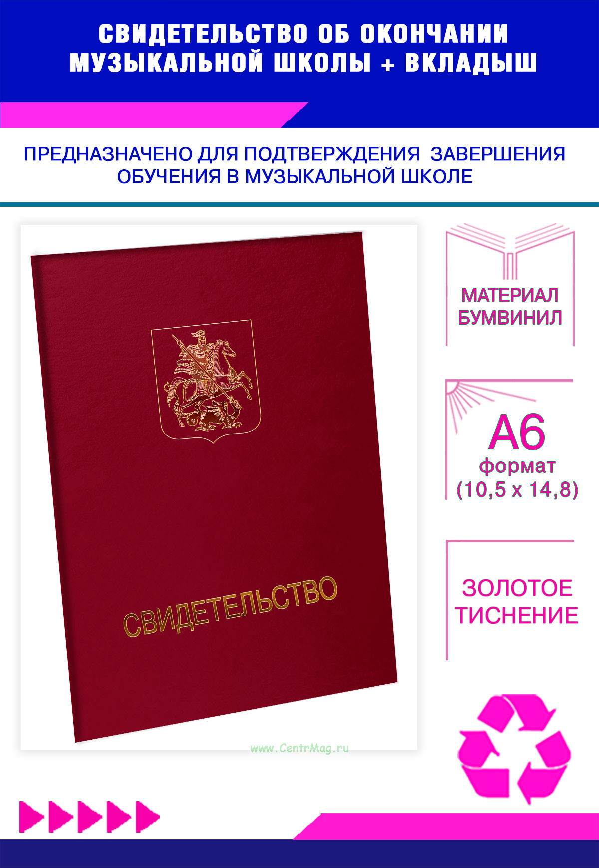 Свидетельство об окончании музыкальной школы, бордовый бумвинил