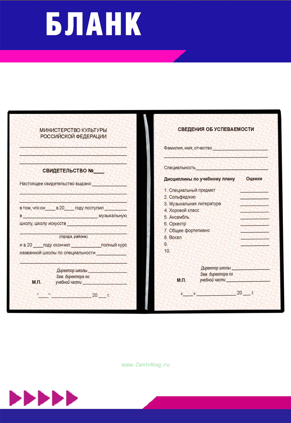 Свидетельство об окончании музыкальной школы, черный бумвинил