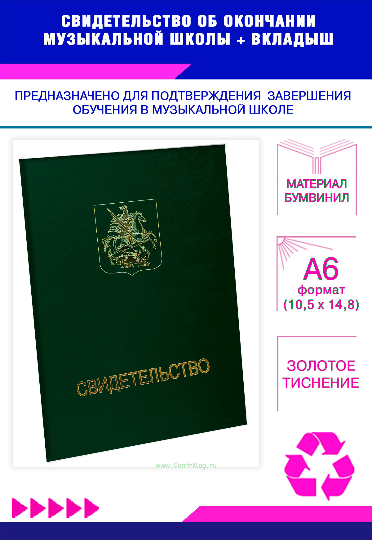 Свидетельство об окончании музыкальной школы, зеленый бумвинил