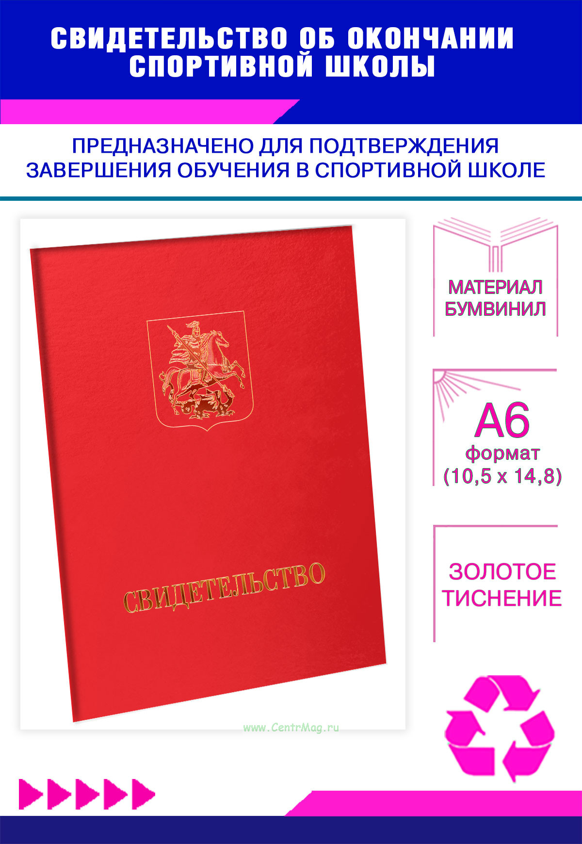Свидетельство об окончании спортивной школы, А6, белый бумвинил (140 руб.)
