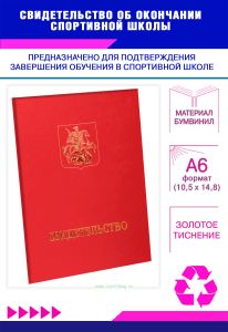 Свидетельство об окончании спортивной школы, А6, красный бумвинил
