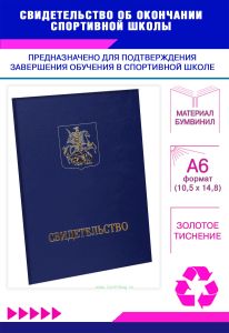 Свидетельство об окончании спортивной школы, А6, голубой бумвинил (140 руб.)
