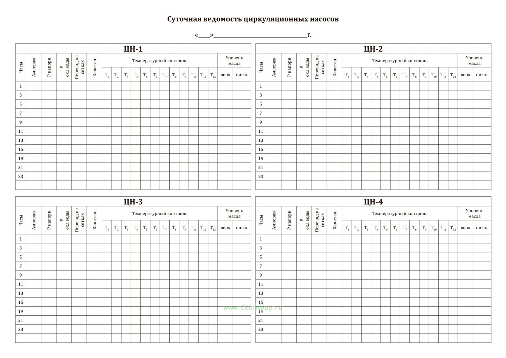 Суточная ведомость циркуляционных насосов