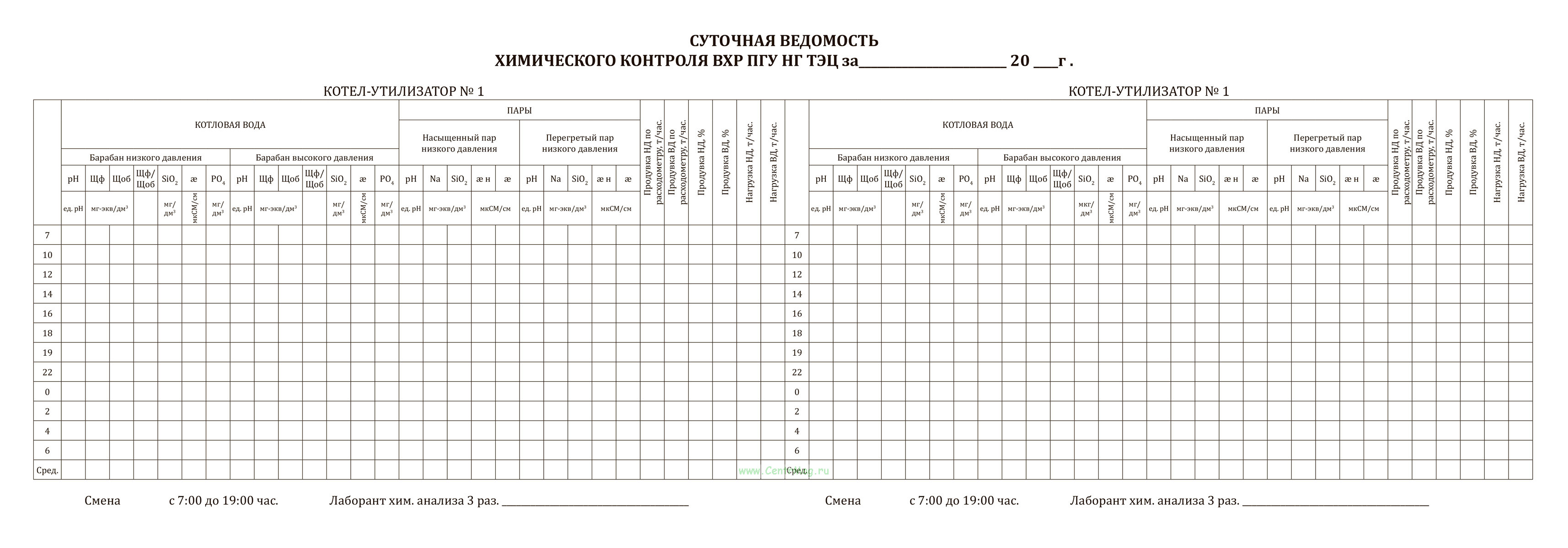 Суточная ведомость химического контроля ВХР ПГУ НГ ТЭЦ продается только как чистый незаполненный бланк, без печатей и подписей соответствует 149-ФЗ от 27.07.2006