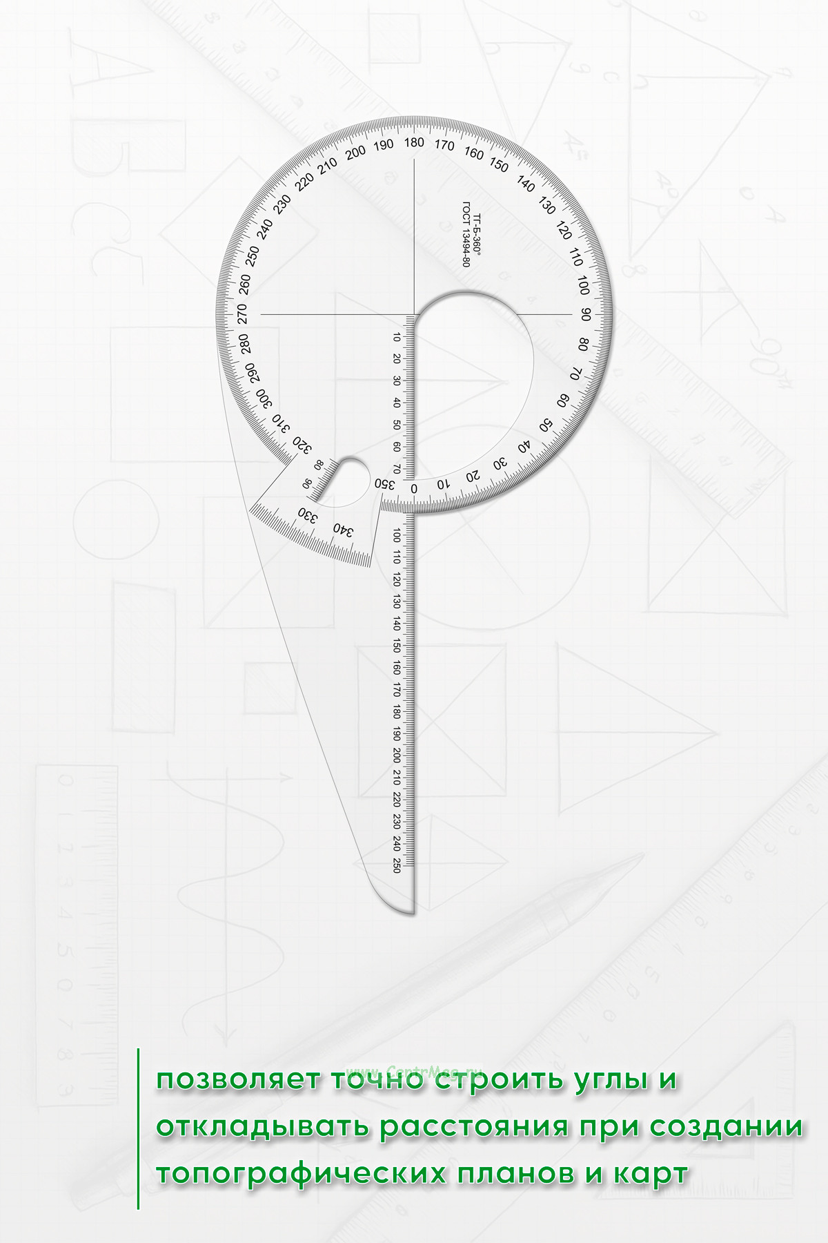 Тахеограф ТГ-Б-360, ГОСТ 13494,предназначен для нанесения точек на чертежной основе по известным углам и расстояниям.Позволяет точно строить углы и откладывать расстояния при создании топографических планов и карт.