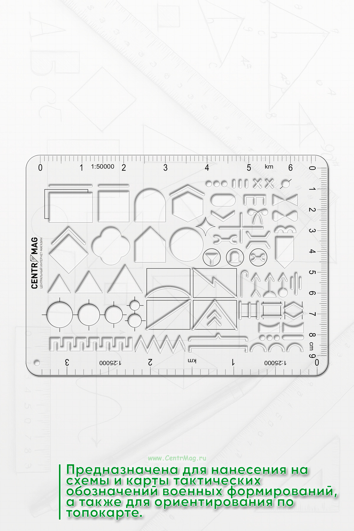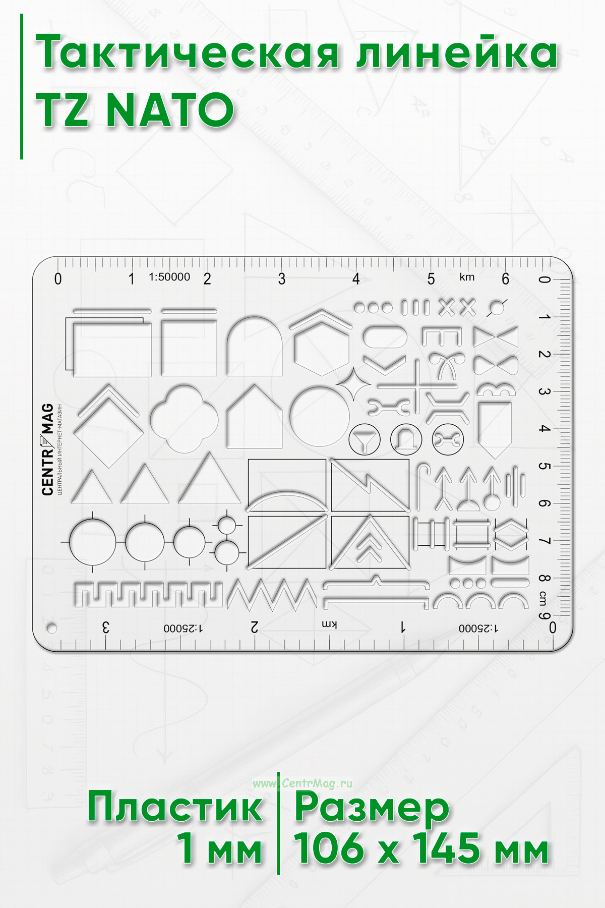 Тактическая линейка TZ NATO предназначена для нанесения на схемы и карты тактических обозначений военных формирований, а также для ориентирования по топокарте.