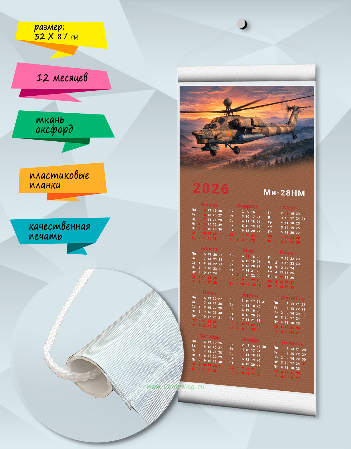 Текстильный настенный календарь "Ми-28НМ" на 2026 год