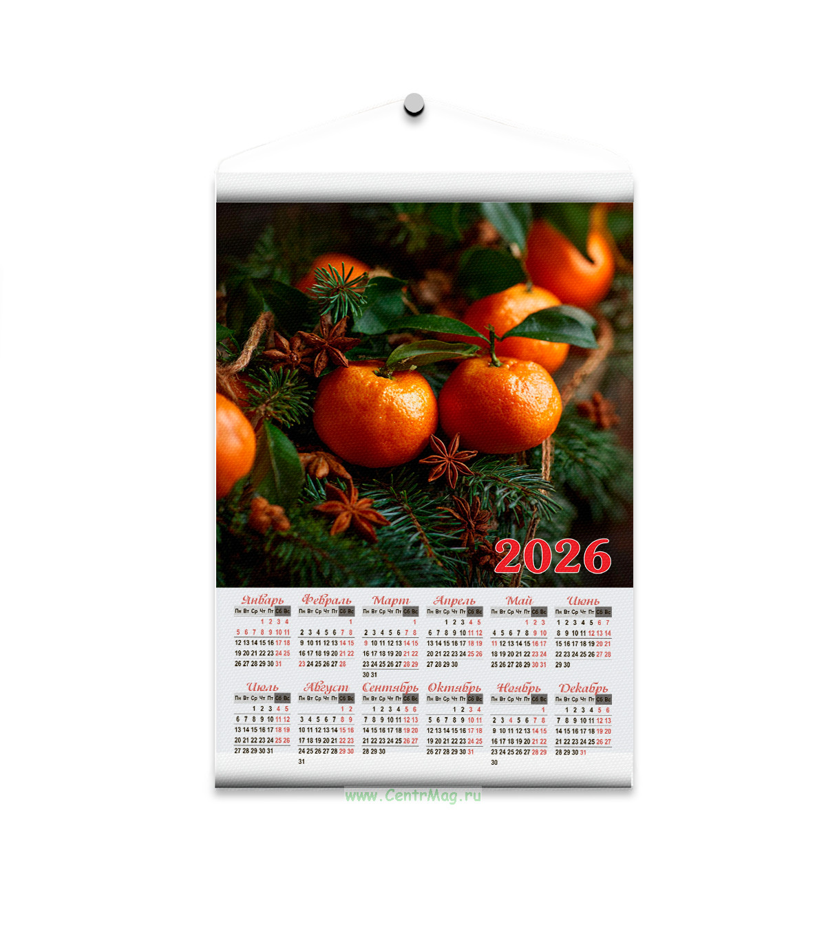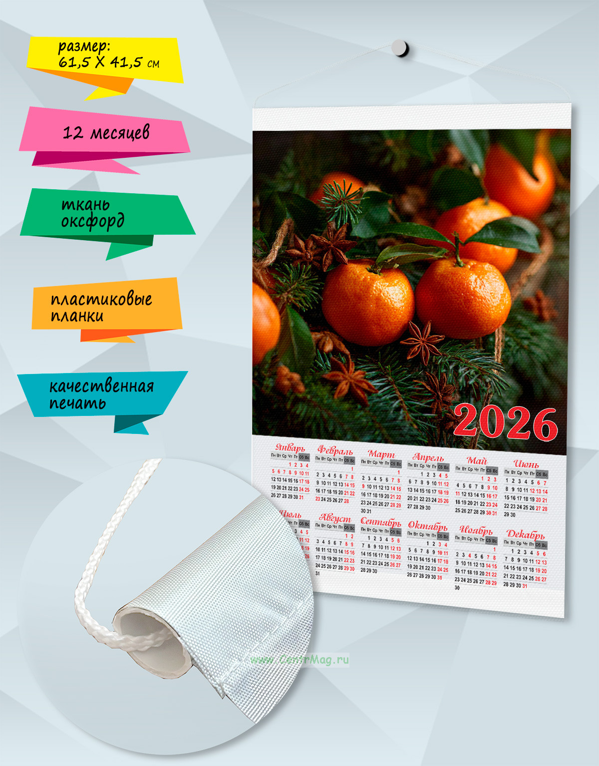 Текстильный настенный календарь "Новогодние мандарины" на 2026 год