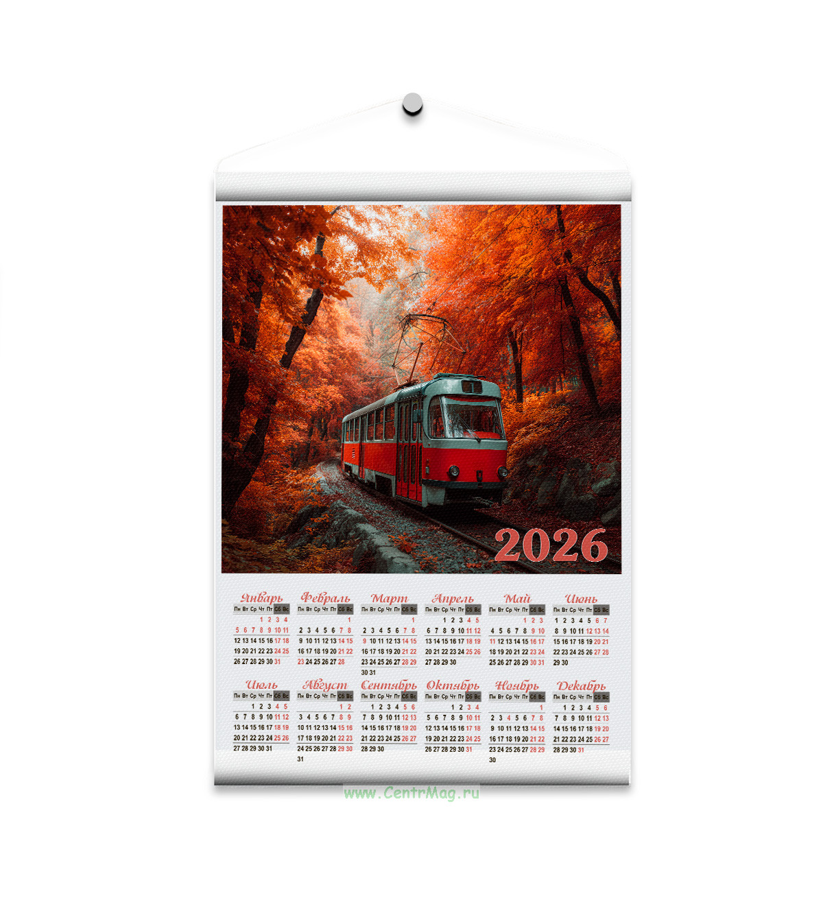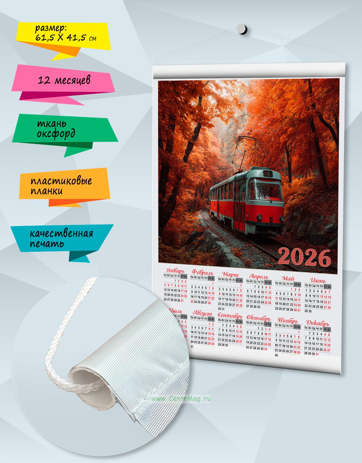 Текстильный настенный календарь "Осенний трамвай" на 2026 год