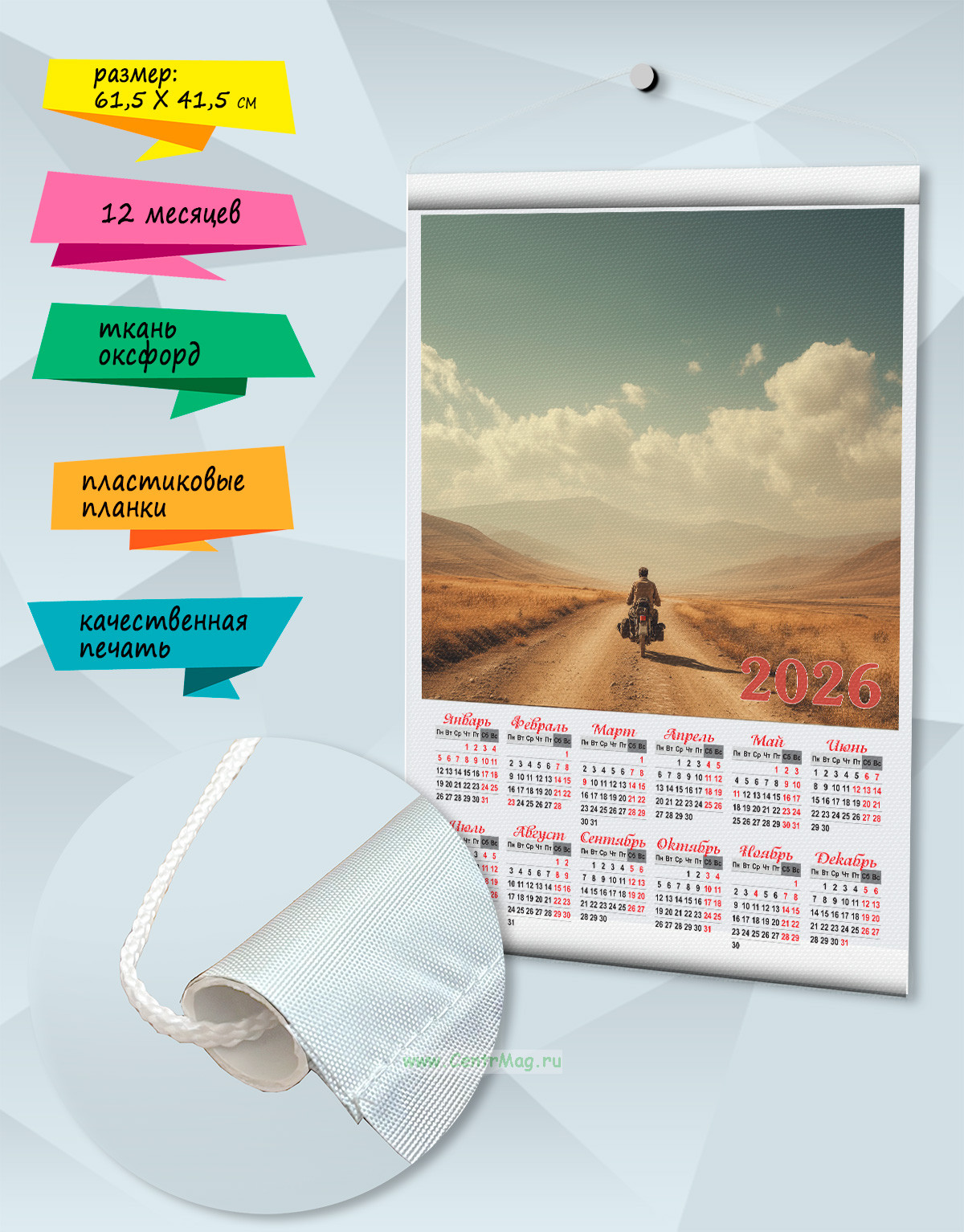 Оригинальный настенный календарь из прочной ткани оксфорд - стильное украшение интерьера. Календарь имеет яркое изображение с качественной печатью, не выгорает и не линяет. Легко разместить в любом удобном месте. Идеальный подарок для друзей, коллег или близких - легкий, красивый и практичный.