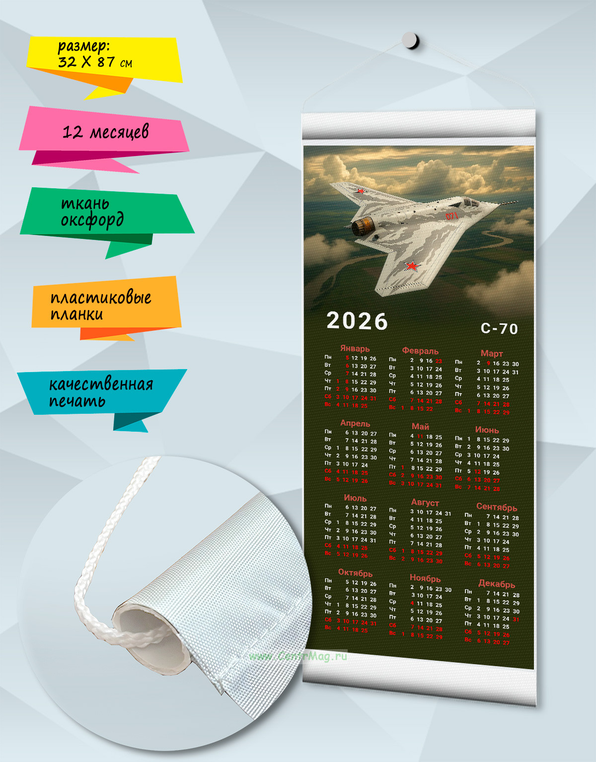 Текстильный настенный календарь "Су-57" №2 на 2026 год (200 руб.)