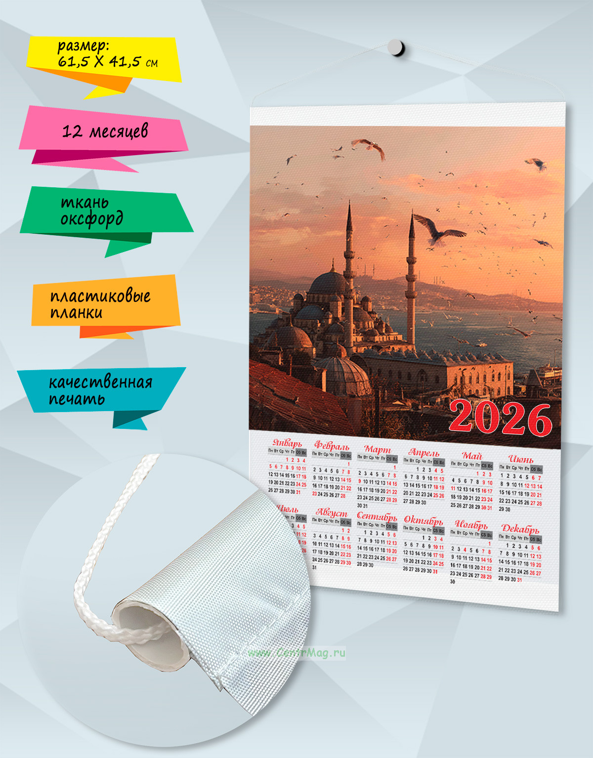 Текстильный настенный календарь "Турецкий закат" на 2026 год