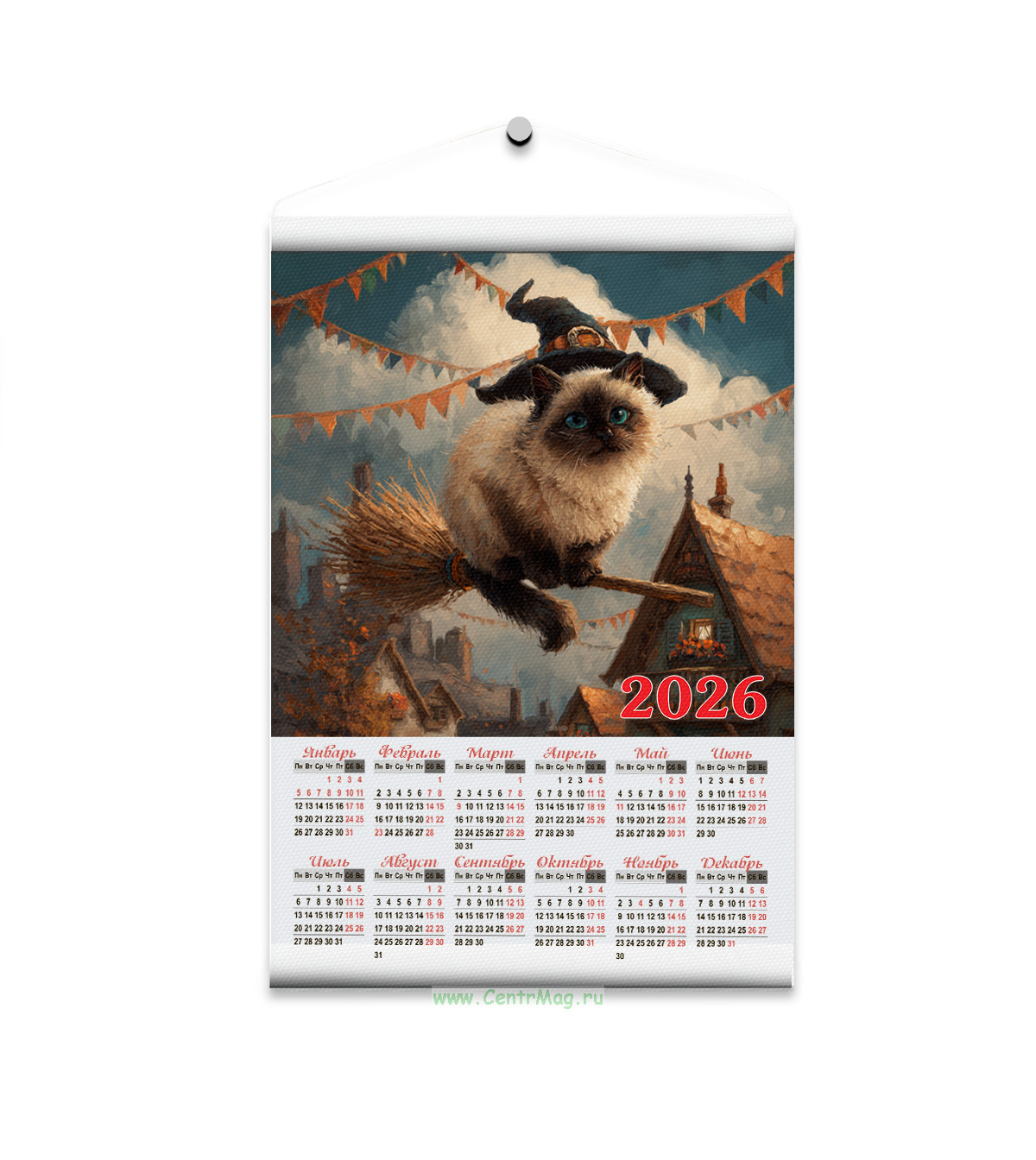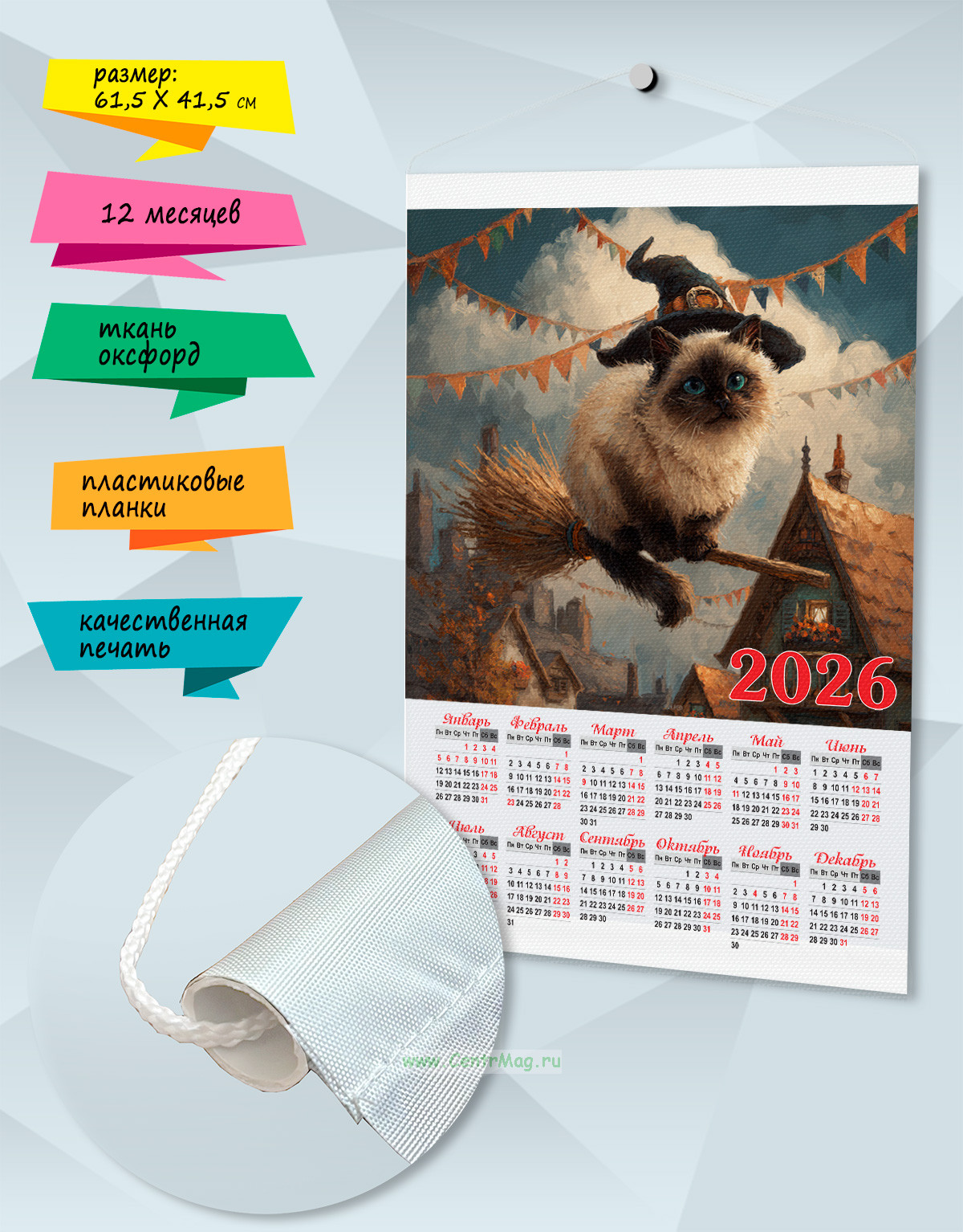 Текстильный настенный календарь "Ведьмин кот" на 2026 год
