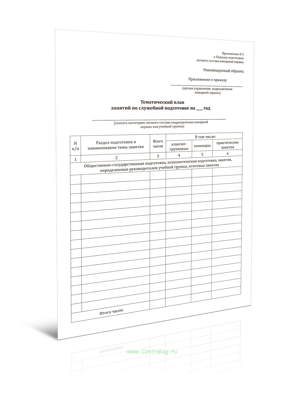 Тематический план занятий по служебной подготовке продается только как чистый незаполненный бланк, без печатей и подписей соответствует 149-ФЗ от 27.07.2006