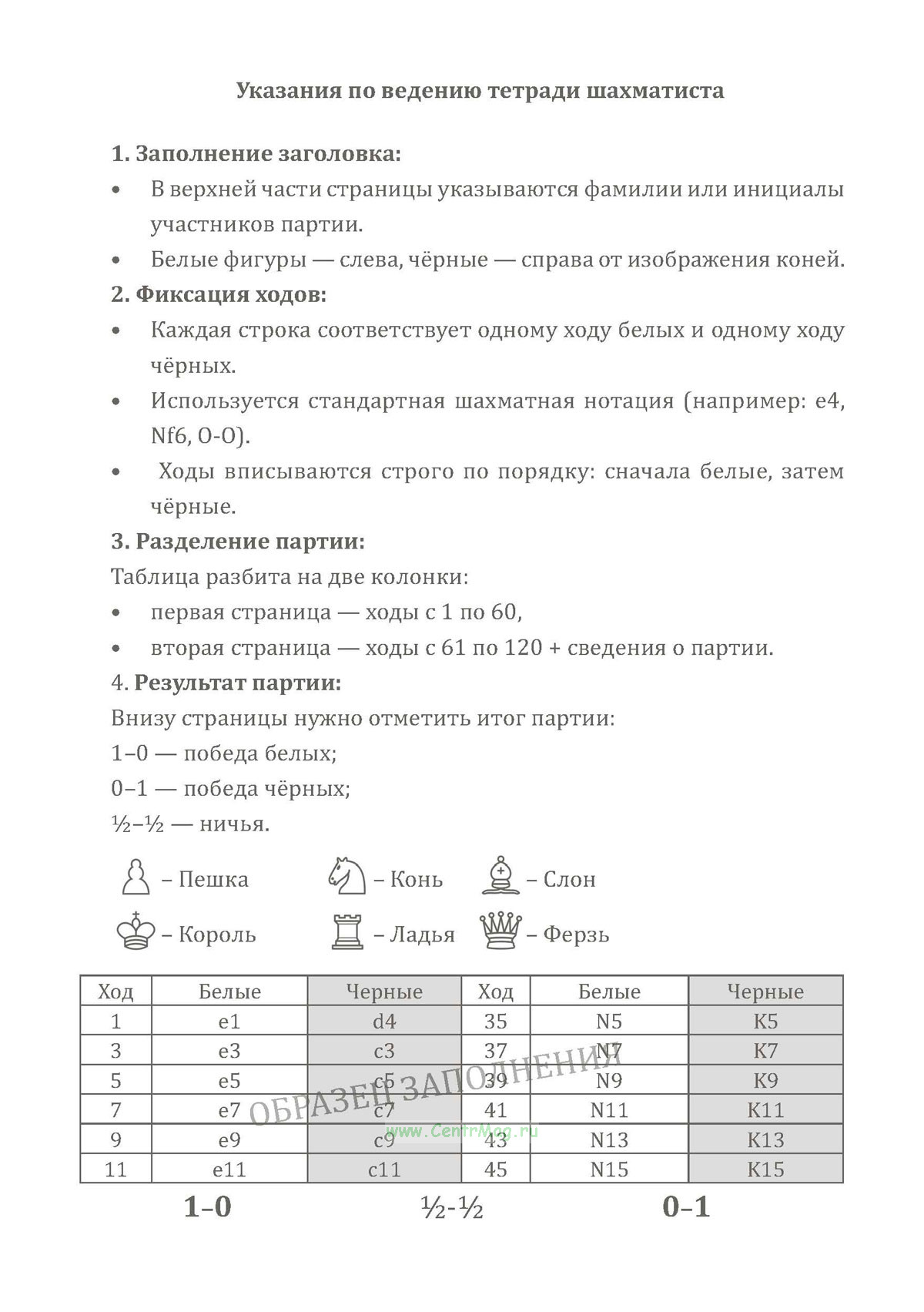 Тетрадь шахматиста - это удобный инструмент для систематизации шахматной практики, анализа партий и развития стратегического мышления. В ней предусмотрены разделы для записи партий, разбора дебютов, фиксации типовых комбинаций и тактических упражнений. Издание ориентировано на шахматистов всех уровней подготовки - от начинающих до разрядников. Тетрадь способствует регулярной тренировке, помогает отслеживать прогресс и формировать индивидуальный стиль игры. Подходит для самостоятельных занятий, работы с тренером и участия в турнирах