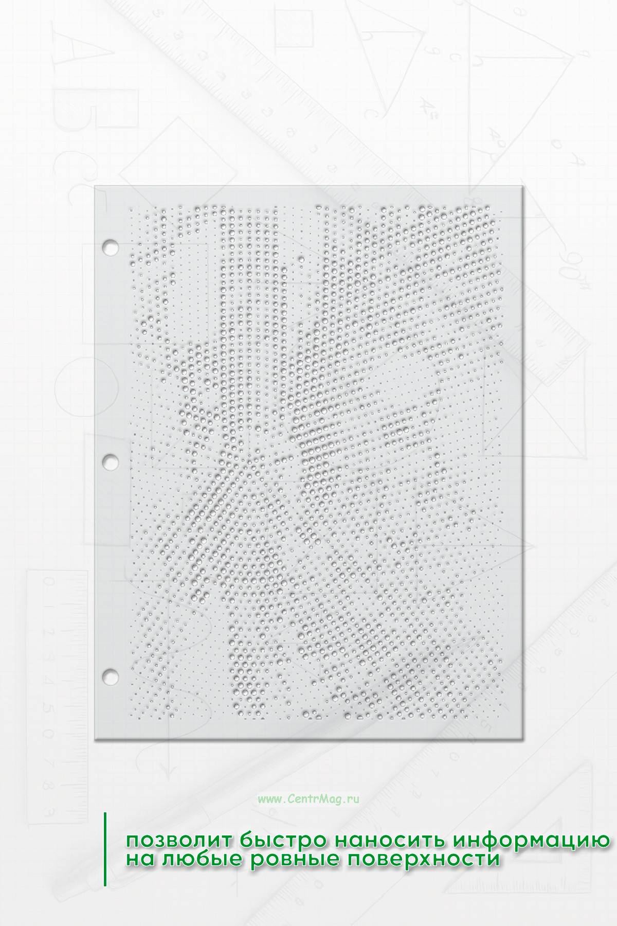 Трафарет позволит быстро наносить информацию на любые ровные поверхности. Прочный и упругий материал позволяет пользоваться трафаретом много раз.