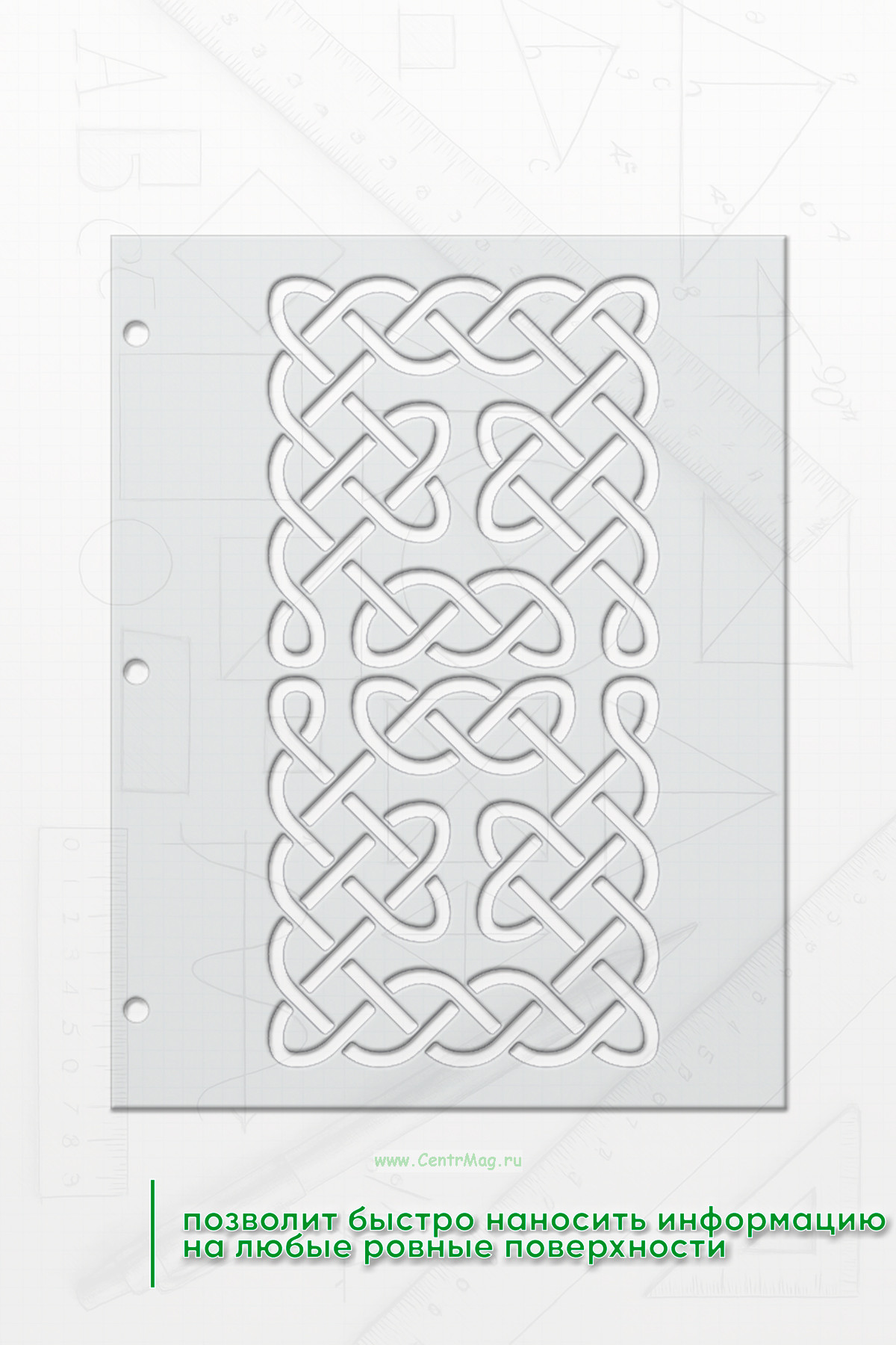 Трафарет позволит быстро наносить информацию на любые ровные поверхности.Прочный и упругий материал позволяет пользоваться трафаретом много раз.