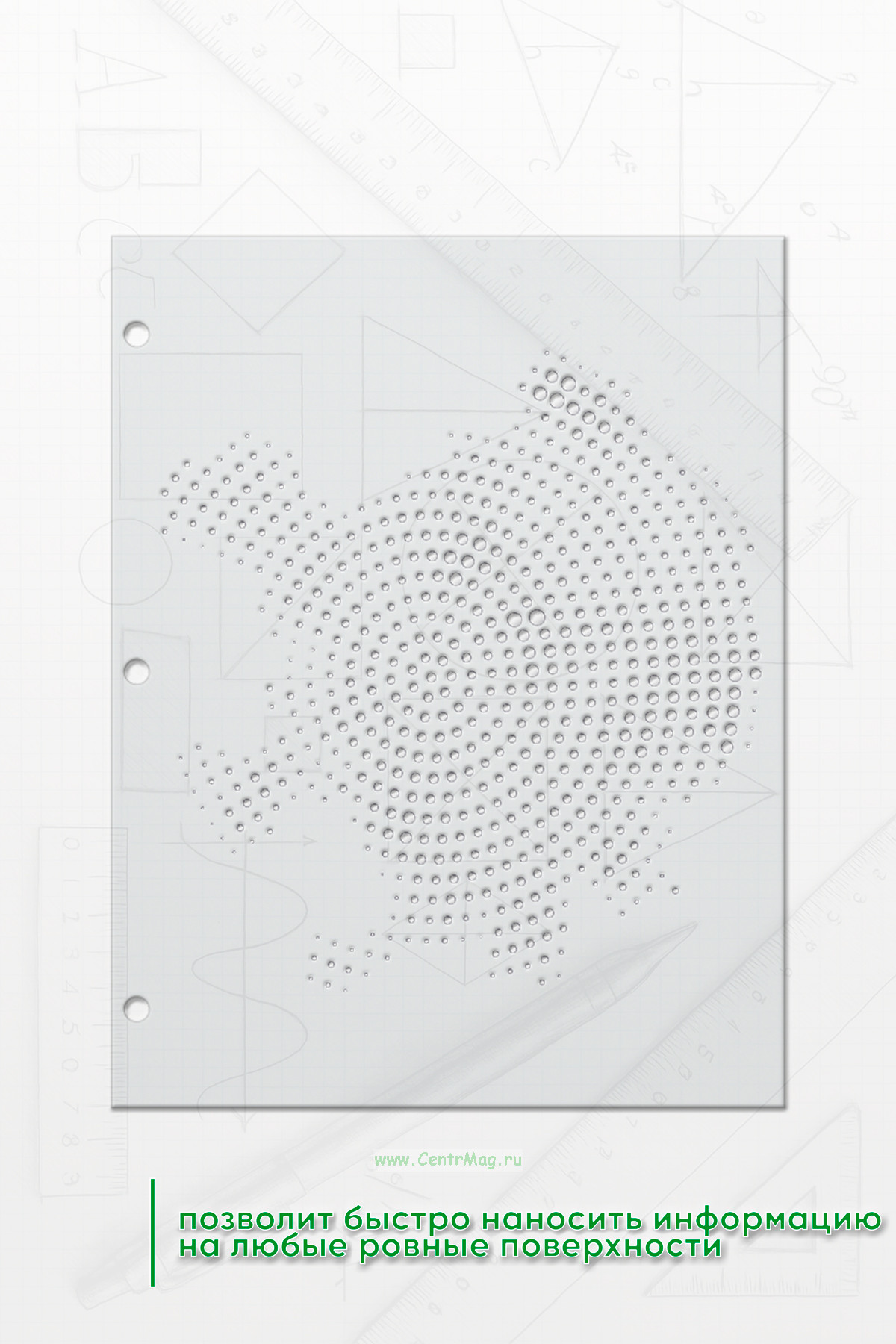 Трафарет позволит быстро наносить информацию на любые ровные поверхности. Прочный и упругий материал позволяет пользоваться трафаретом много раз.