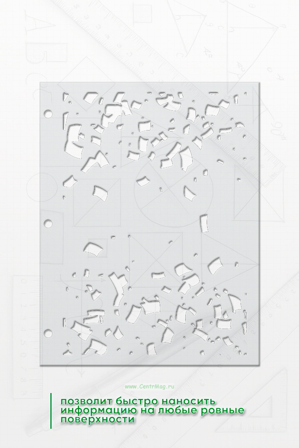 Трафарет позволит быстро наносить информацию на любые ровные поверхности. Прочный и упругий материал позволяет пользоваться трафаретом много раз.