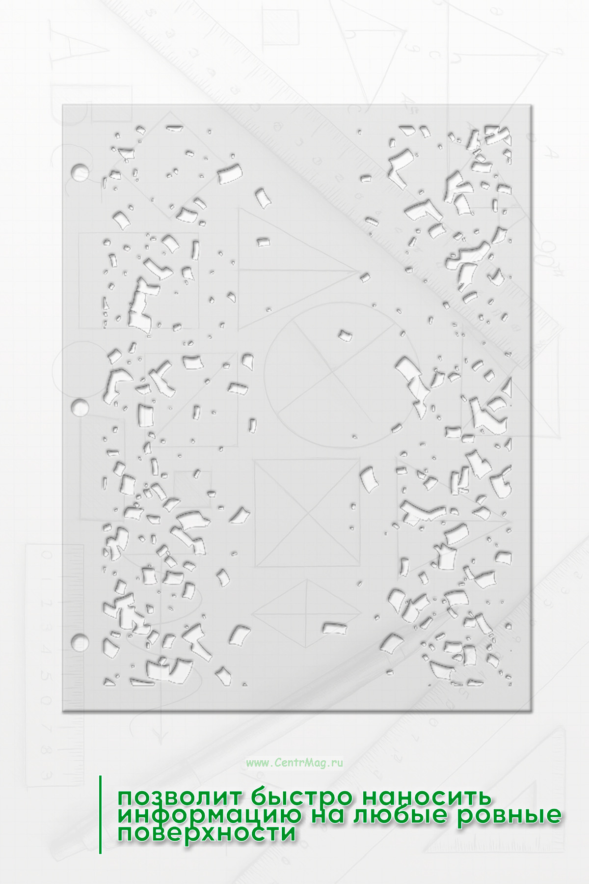 Трафарет позволит быстро наносить информацию на любые ровные поверхности. Трафарет сделан из прозрачного пластика толщиной 1 мм. Прочный и упругий материал позволяет пользоваться трафаретом много раз.