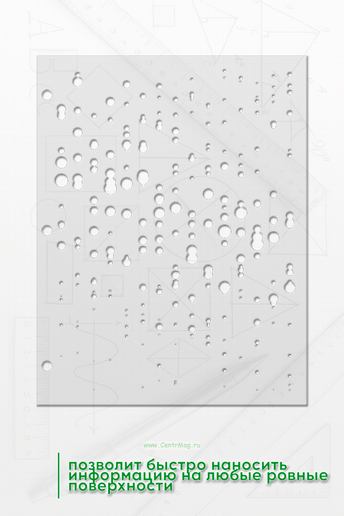 Трафарет позволит быстро наносить информацию на любые ровные поверхности.Прочный и упругий материал позволяет пользоваться трафаретом много раз.