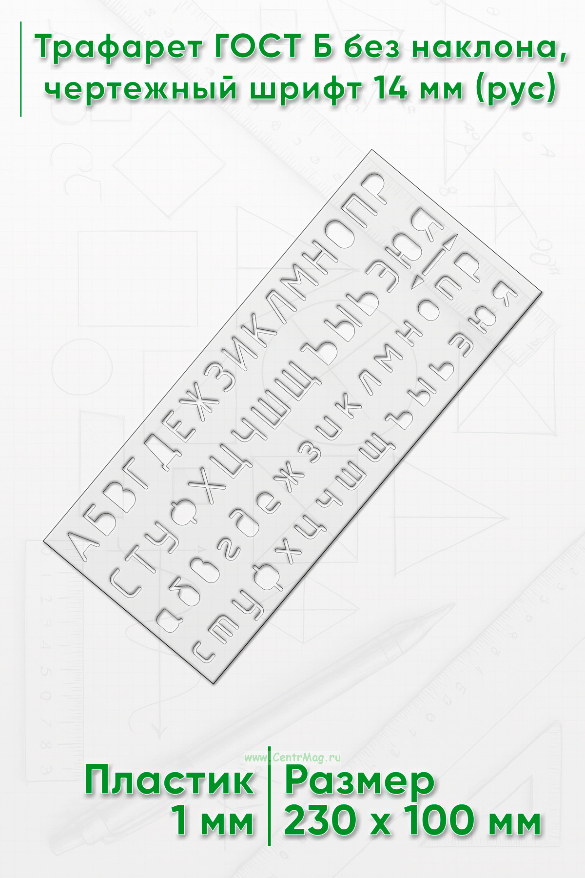 Трафарет ГОСТ Б без наклона, чертежный шрифт 14 мм (рус)