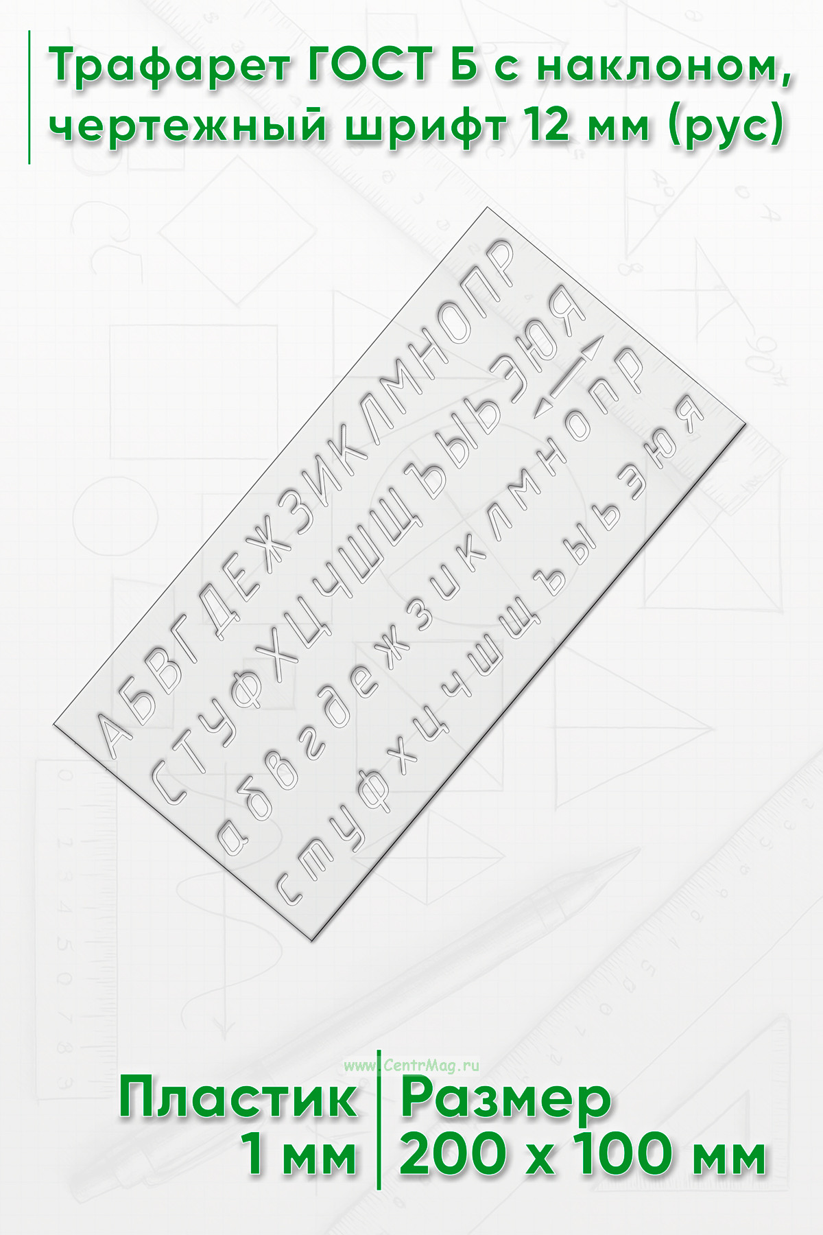 Трафарет ГОСТ Б с наклоном, чертежный шрифт 12 мм (рус)