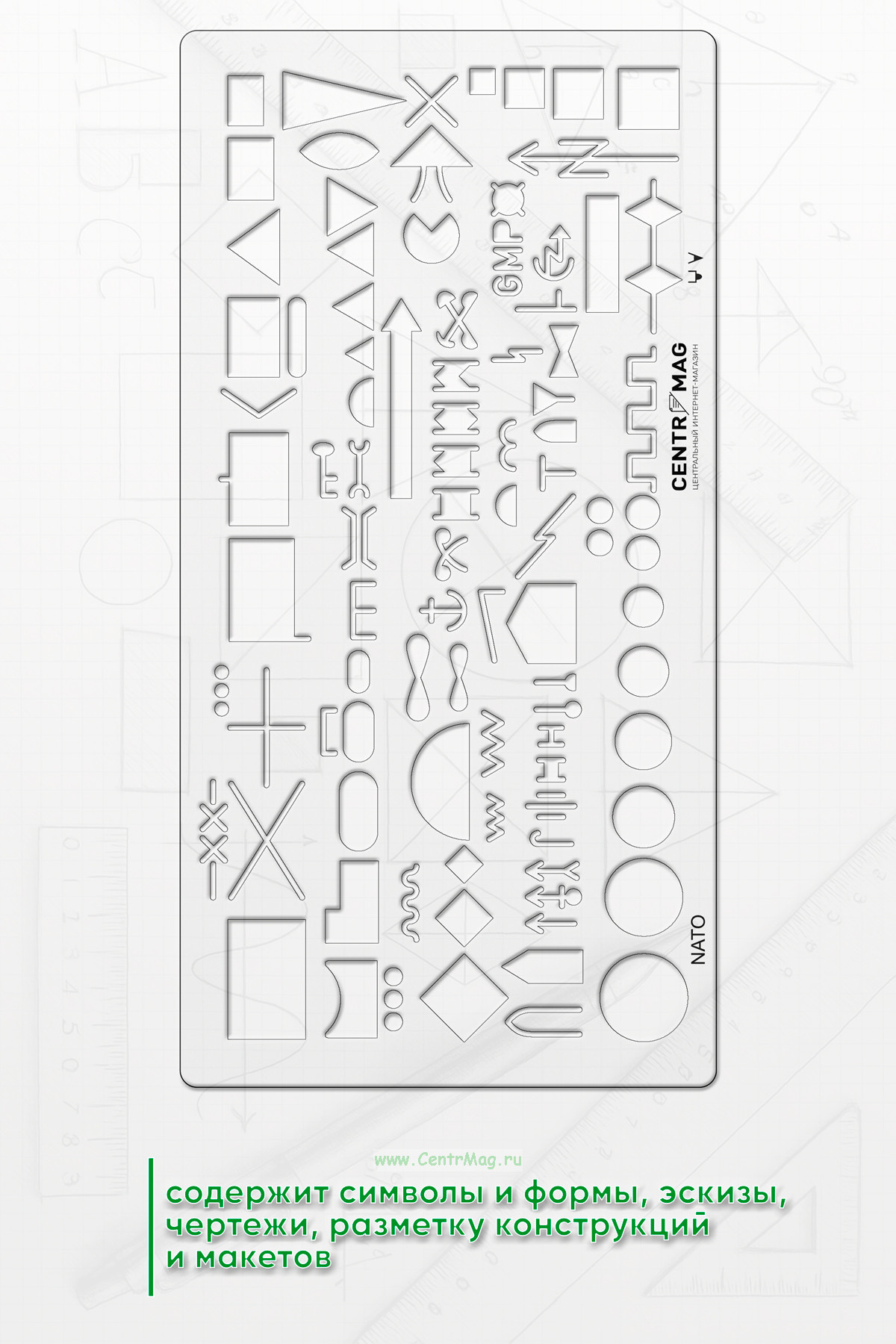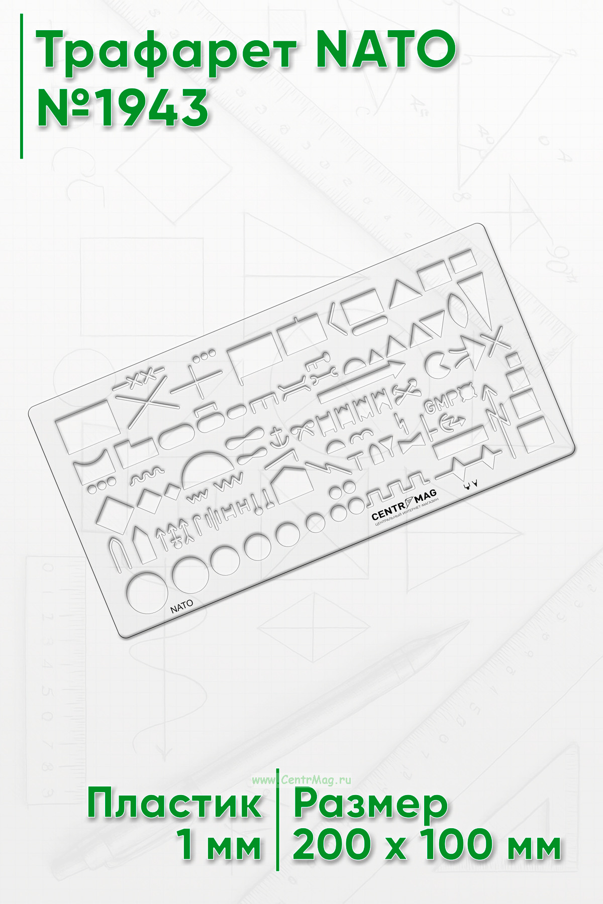 Трафарет NATO №1943 содержит символы и формы, эскизы, чертежи, разметку конструкций и макетов.