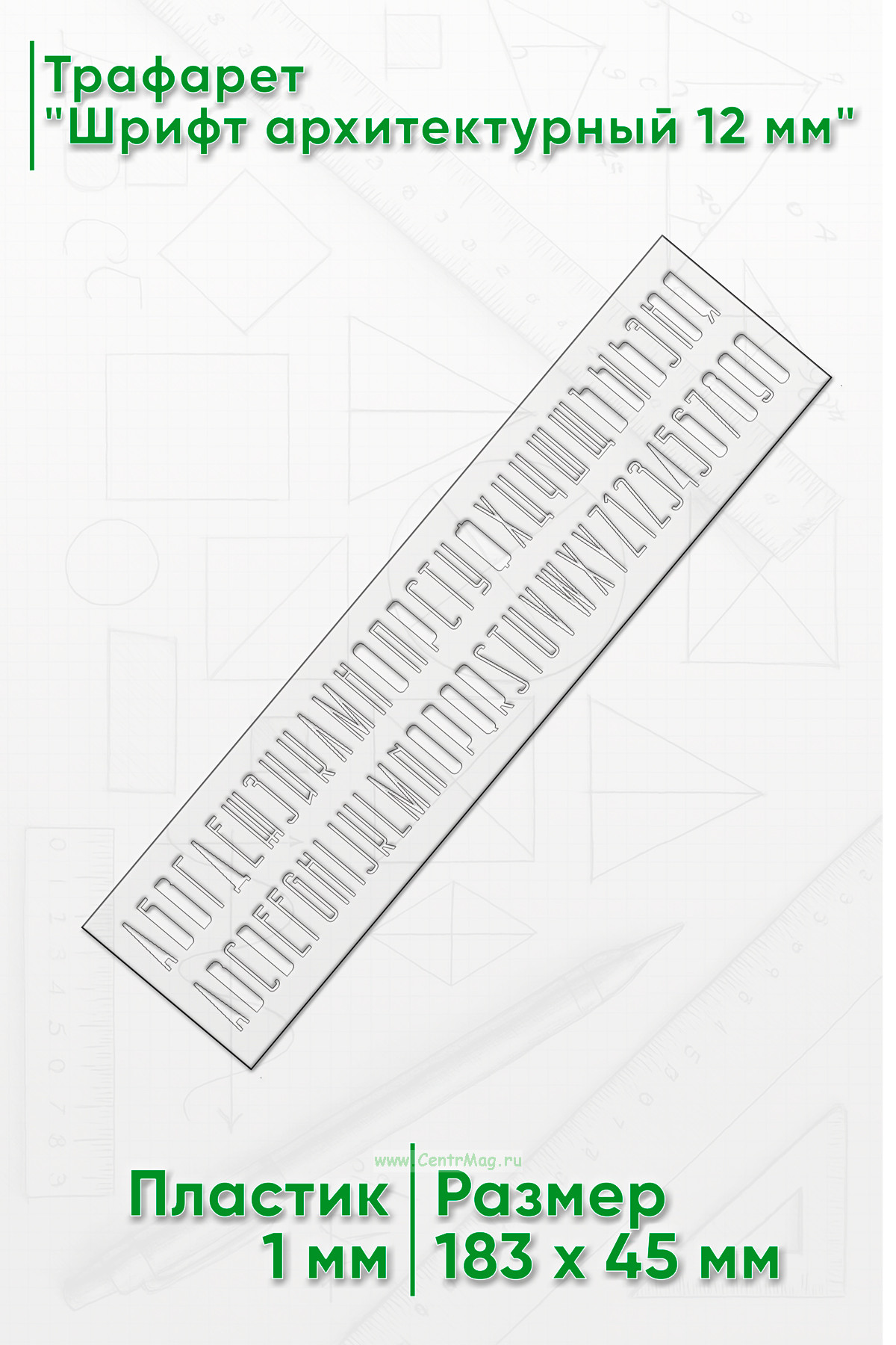 Трафарет "Шрифт архитектурный 12 мм" (рус. 45х183 мм)