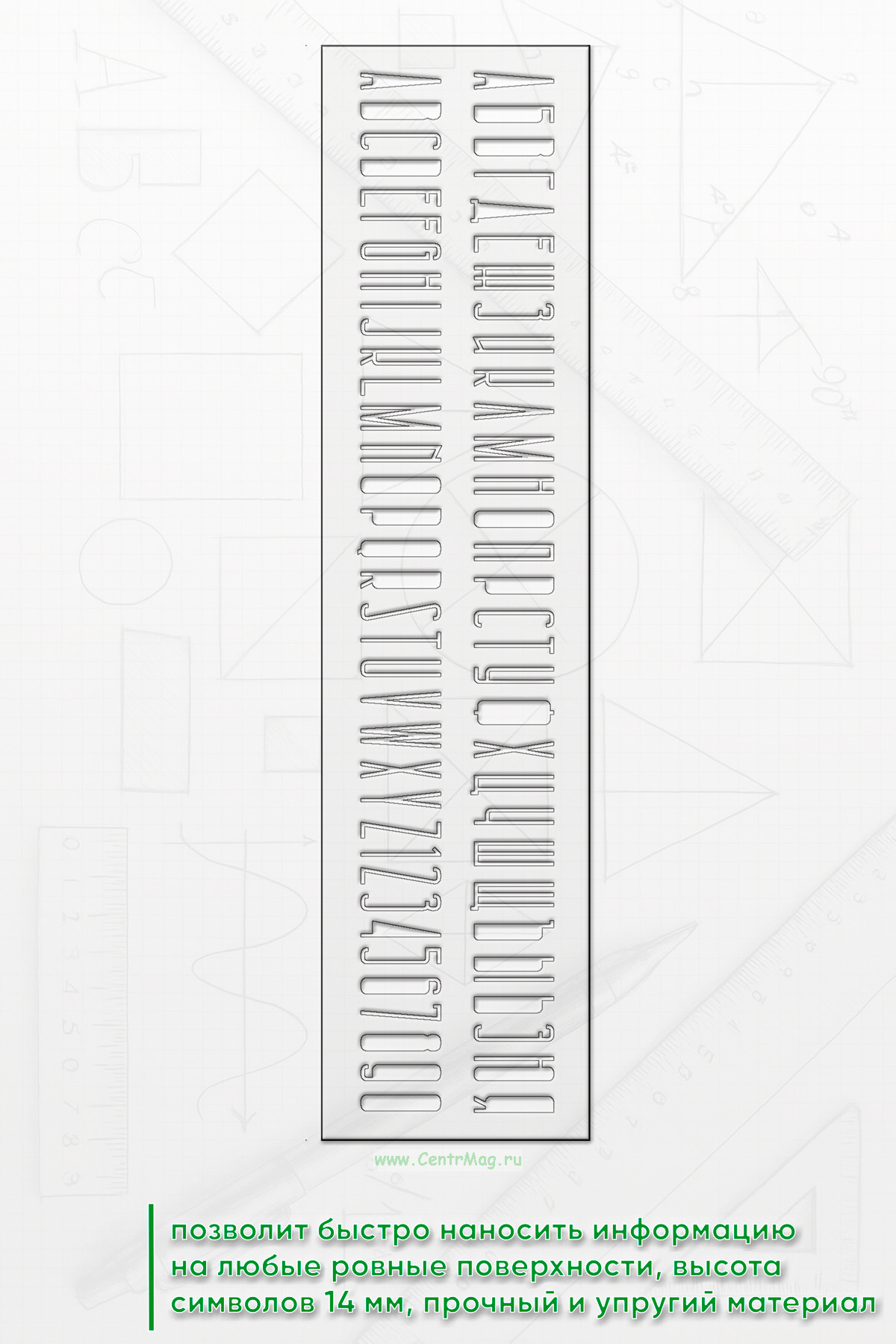 Трафарет "Шрифт архитектурный 14 мм" (рус. 45х205 мм) (310 руб.)