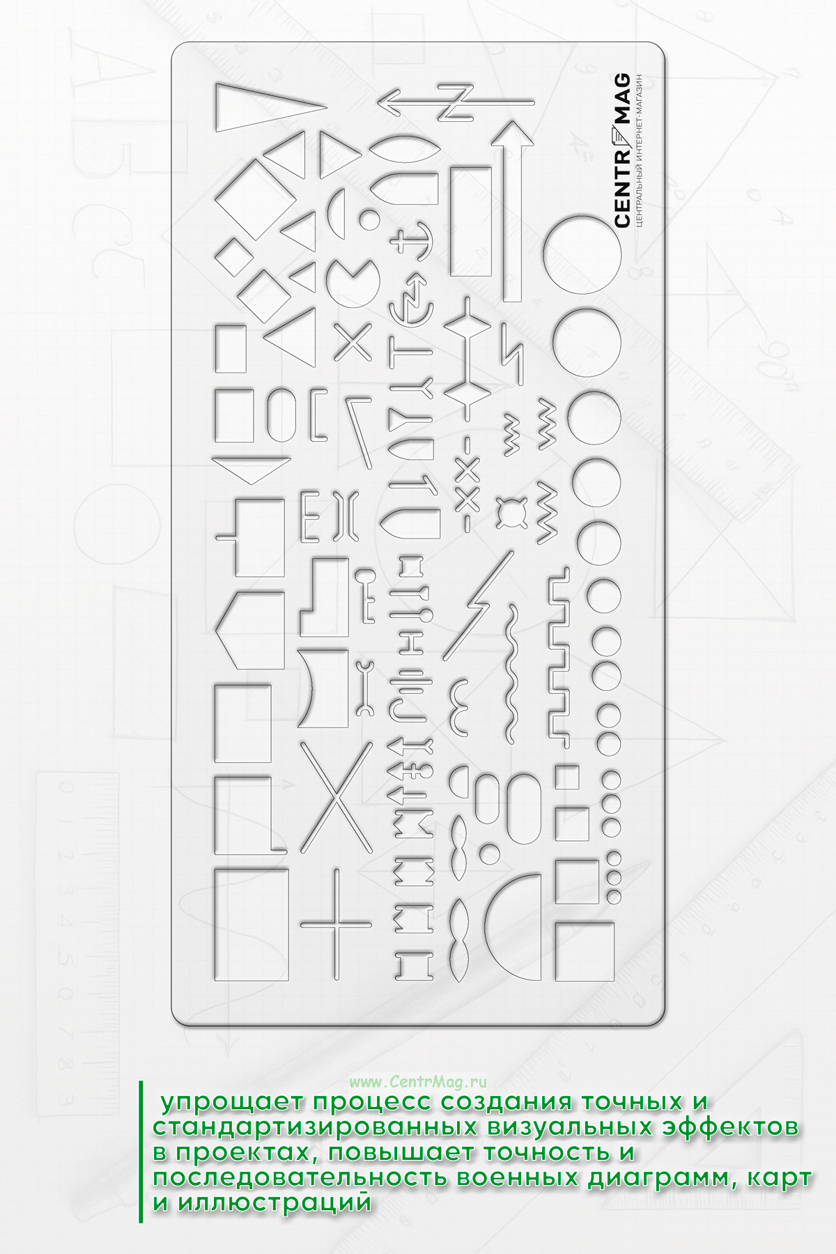 Трафарет упрощает процесс создания точных и стандартизированных визуальных эффектов в проектах, повышает точность и последовательность военных диаграмм, карт и иллюстраций.