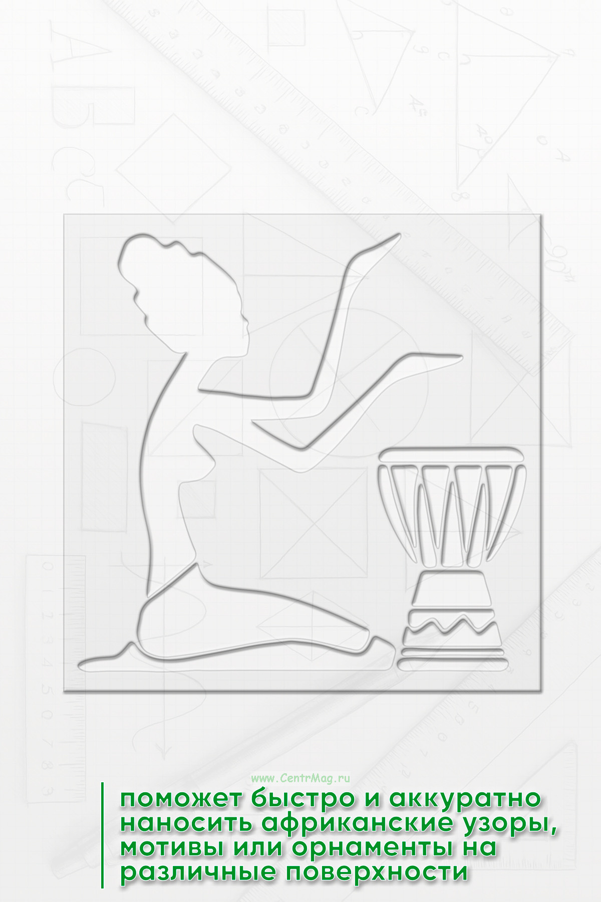 Трафарет "Африканский ритм" обычно используется для создания декоративных узоров, рисунков или элементов в художественной, дизайнерской, или декоративной деятельности. Поможет быстро и аккуратно наносить характерные африканские узоры, мотивы или орнаменты на различные поверхности, такие как стены, ткани, бумага или другие материалы.