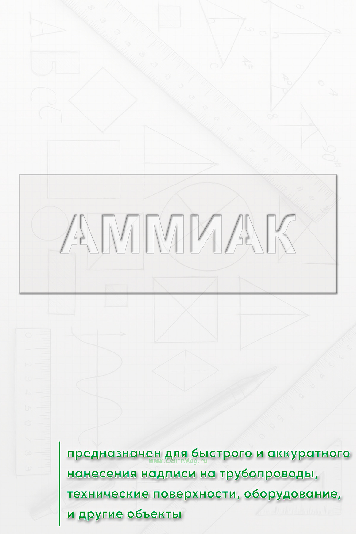Трафарет "Аммиак" предназначен для быстрого и аккуратного нанесения надписи на трубопроводы, технические поверхности, оборудование, шкафы и другие объекты.