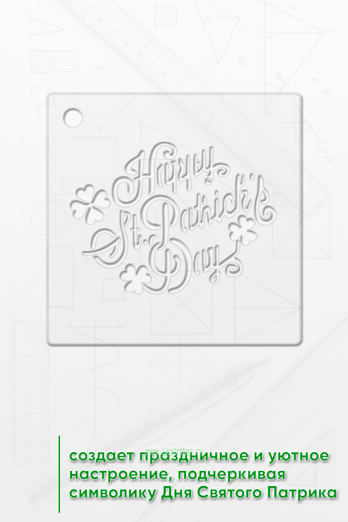 Трафарет создает праздничное и уютное настроение, подчеркивая символику Дня Святого Патрика.