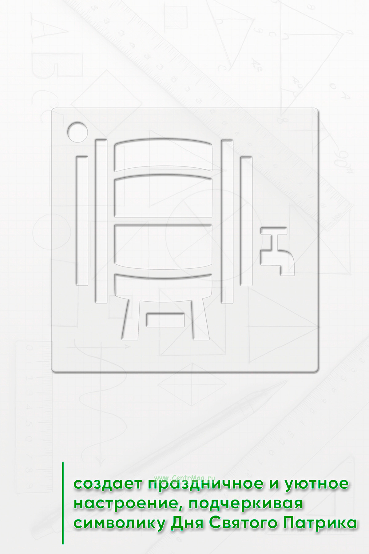 Трафарет создает праздничное и уютное настроение, подчеркивая символику Дня Святого Патрика.