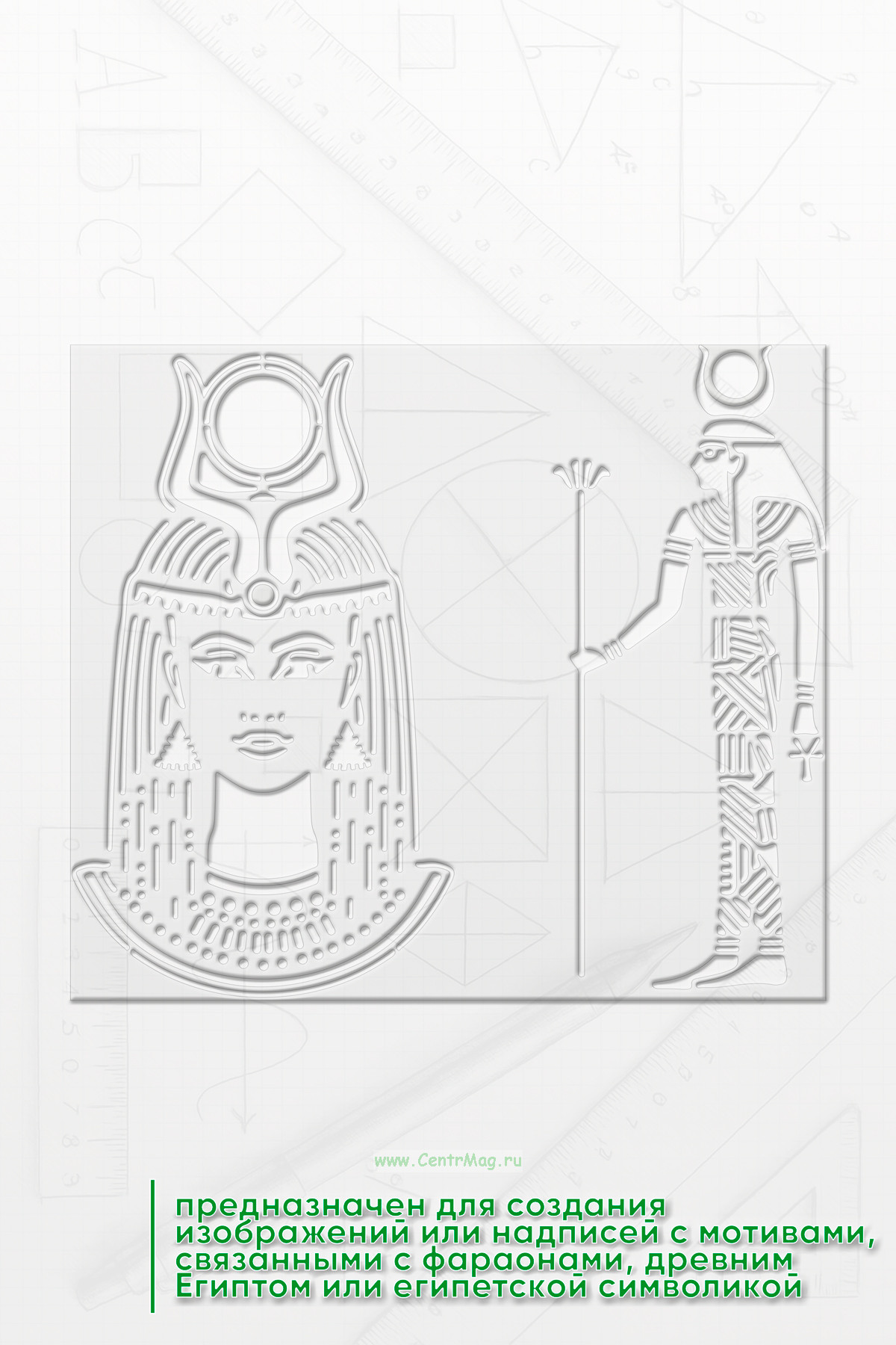 Трафарет "Богиня Хатхор" предназначен для создания изображений или надписей с мотивами, связанными с фараонами, древним Египтом или египетской символикой